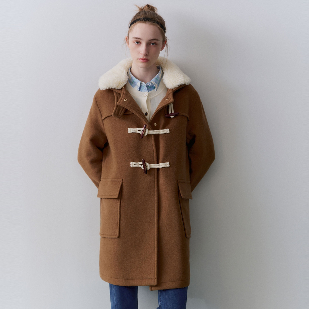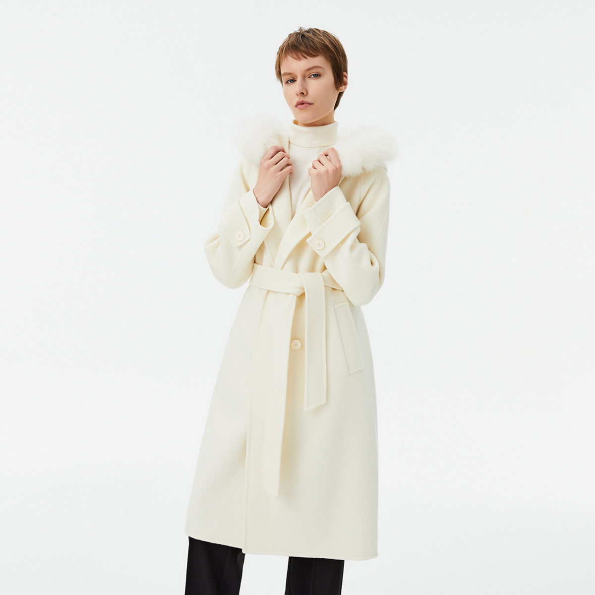 【商场同款】冬季全绵羊毛复古连帽长毛呢外套大衣 656027