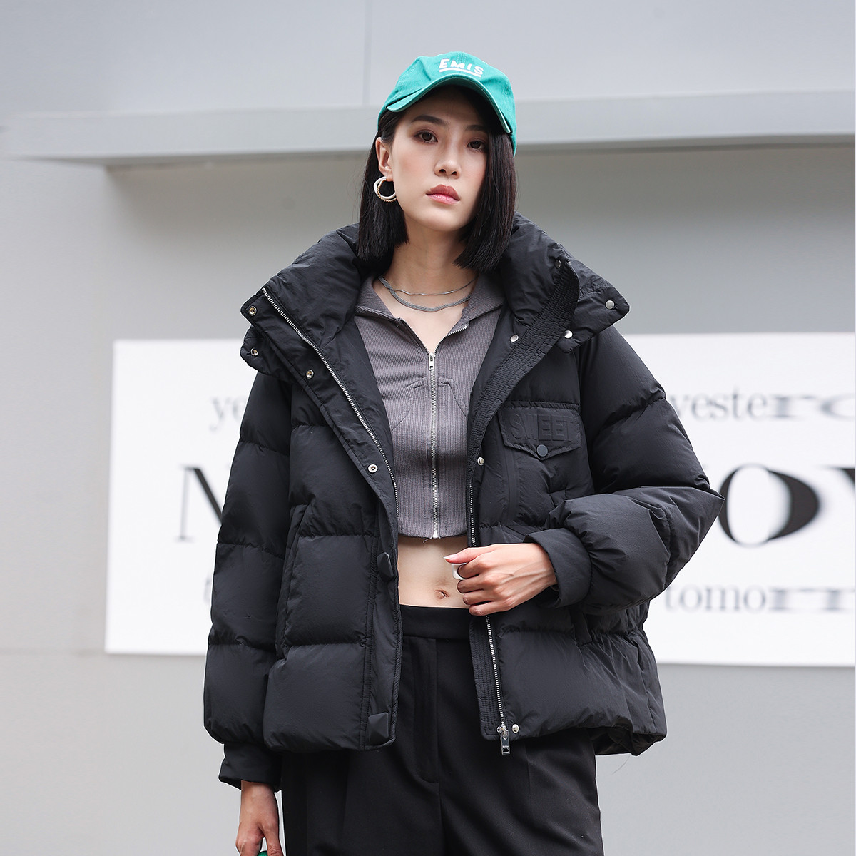 【鹅绒】厚款保暖连帽女士短款宽松休闲泡芙羽绒服 875871