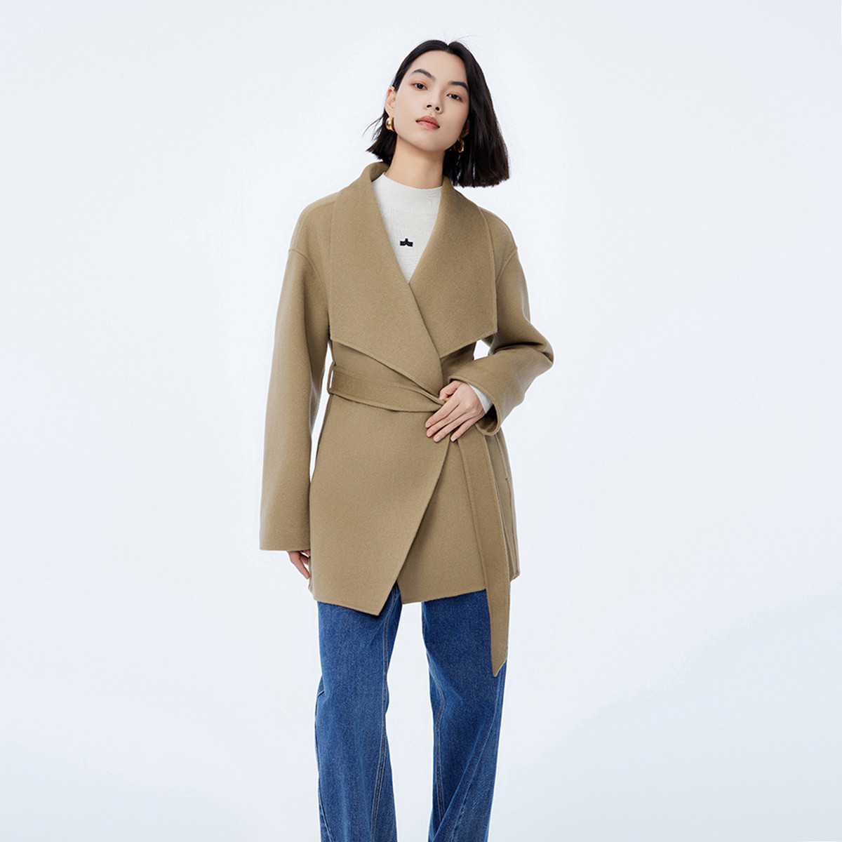 冬季100%绵羊毛气质通勤优雅毛呢外套大衣小个子女 830555