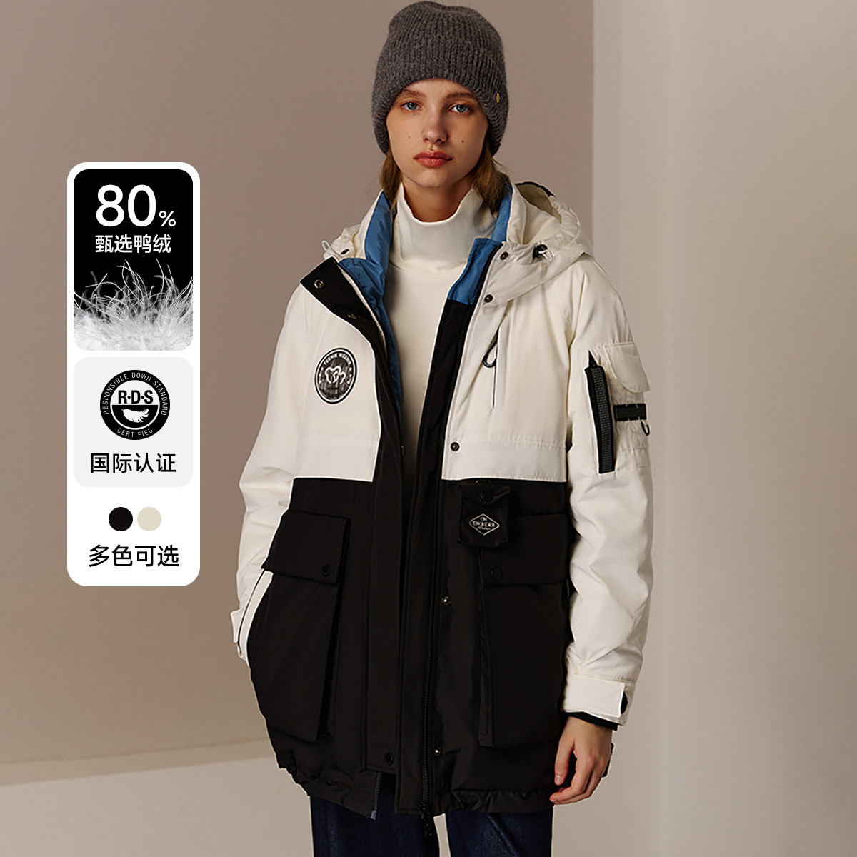 小熊连帽羽绒服女冬款休闲轻户外撞色工装保暖上衣外套女士 892993