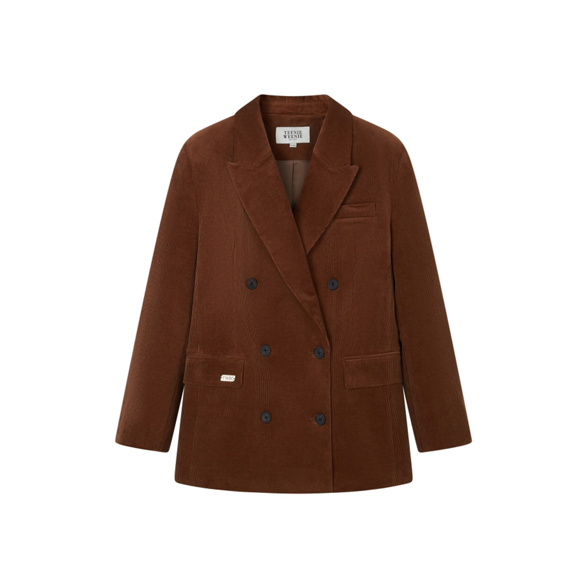 外套女款春秋复古宽松灯芯绒双排扣西装外套上衣女 801409
