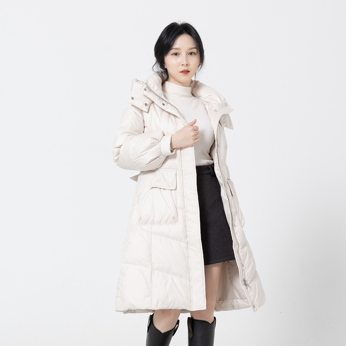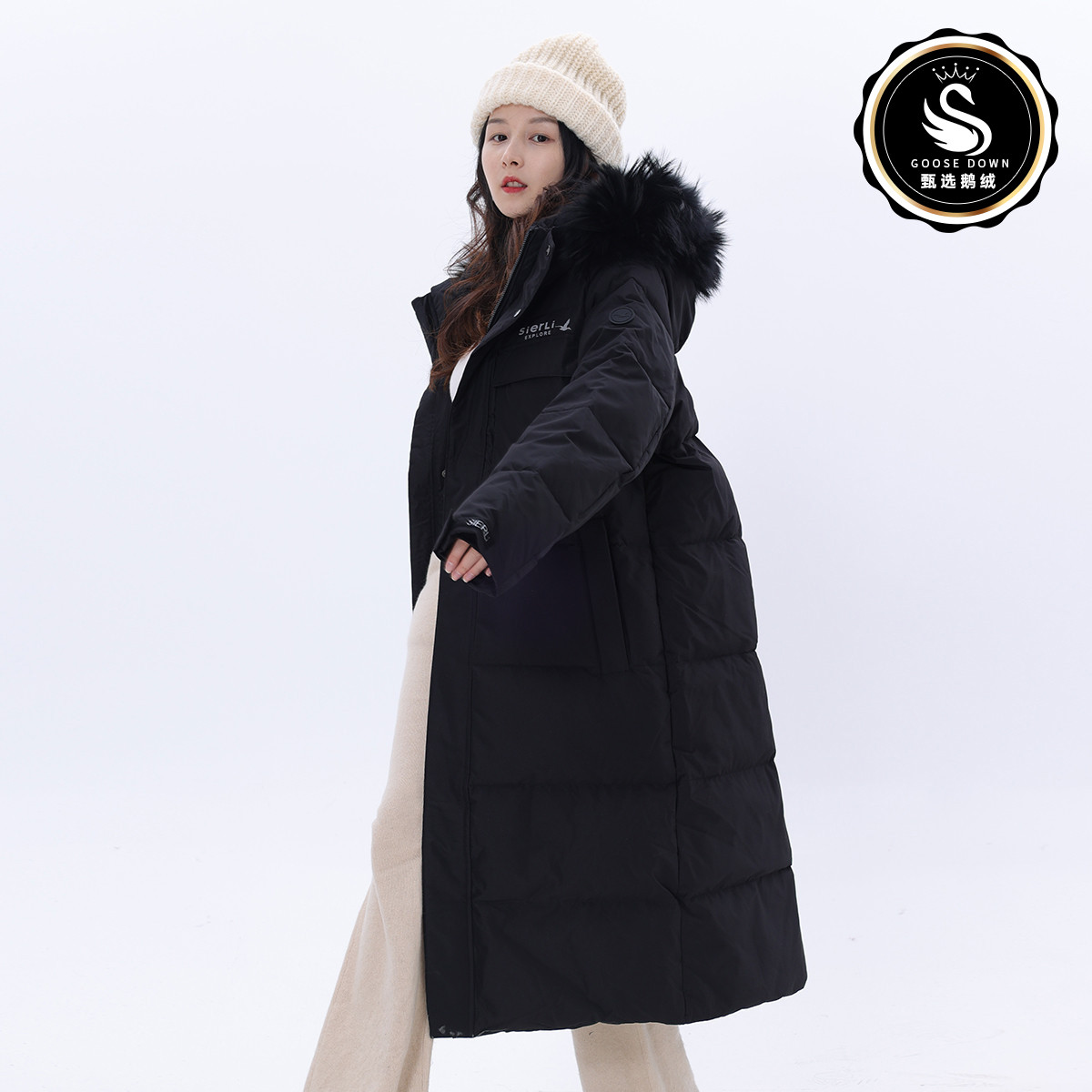 【鹅绒羽皇系列】户外厚款保暖女直筒连帽长款羽绒服 073887
