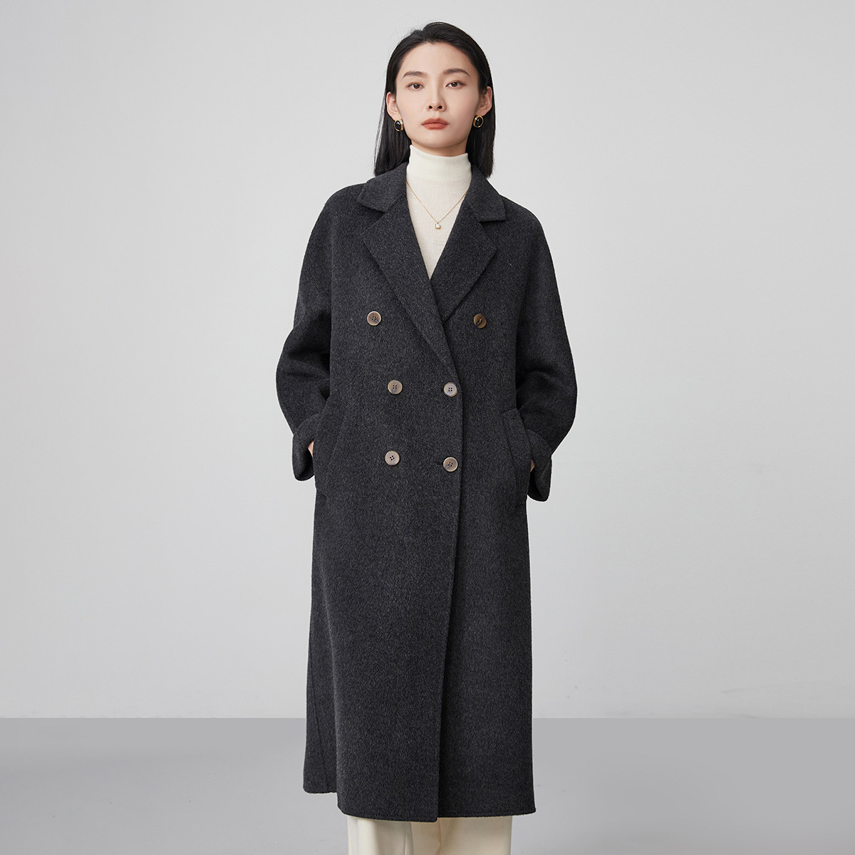 【含桑蚕丝】秋冬时尚优雅羊毛大衣女长款气质通勤毛呢外套 454047
