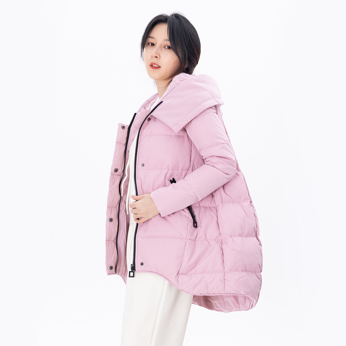 休闲减龄中长款女式连帽百搭显瘦厚款直筒羽绒服 452767