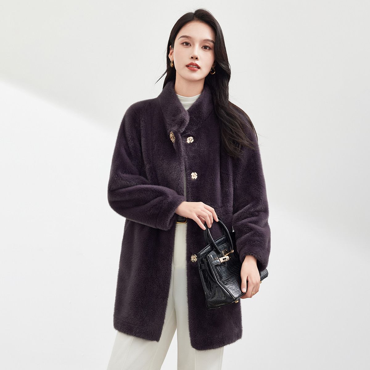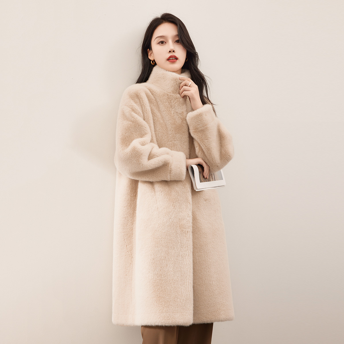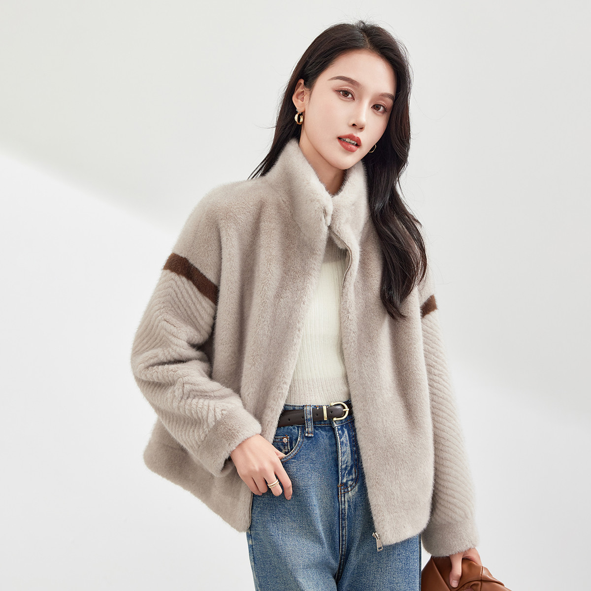 冬季小个子立领保暖仿貂绒环保皮草女式日常通勤休闲仿皮草外套 792607