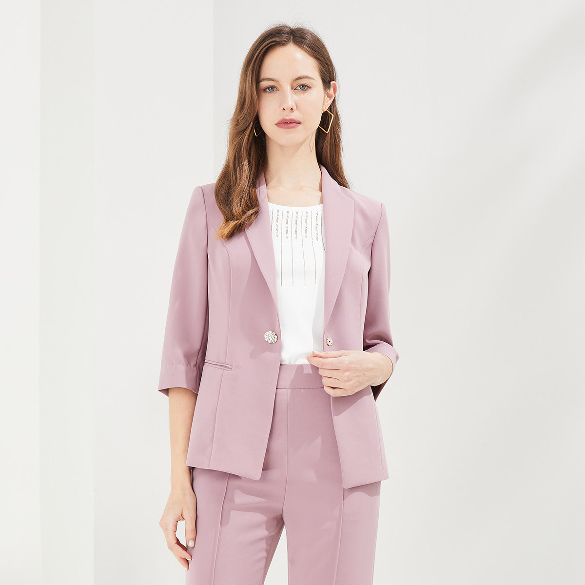 职场OL干练气质一粒扣七分袖上衣修身显瘦女式西服外套 187807