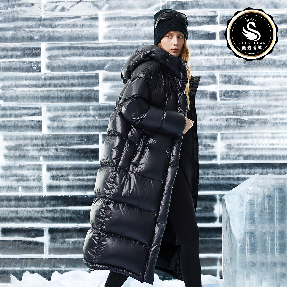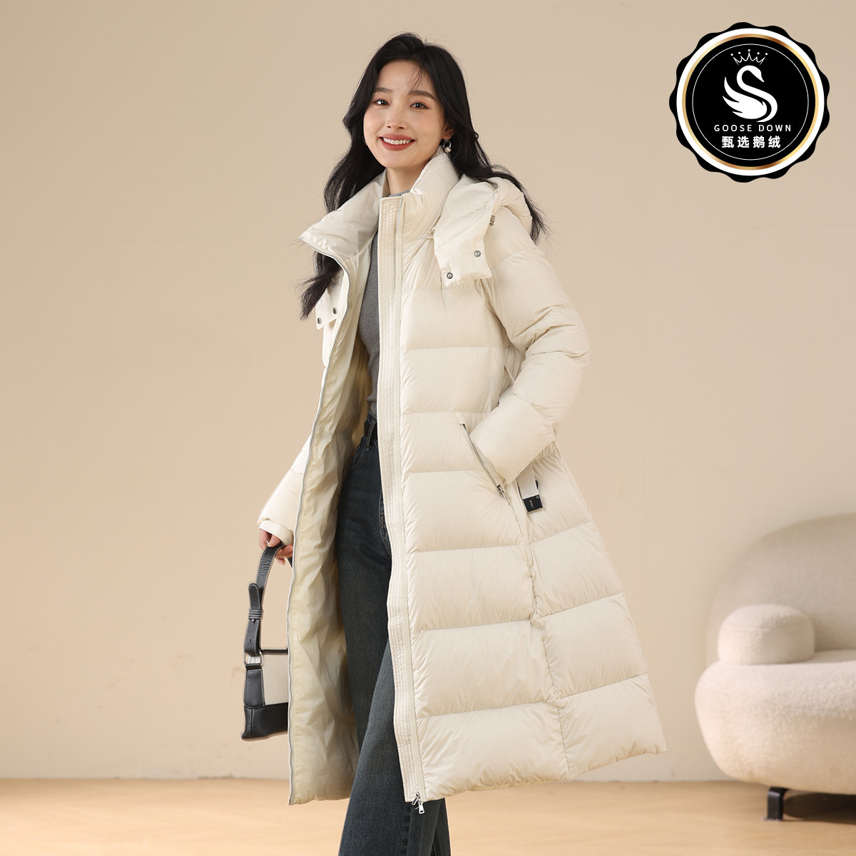 【鹅绒爆款】冬季女士长款羽绒服简约连帽防寒保暖极寒服 593759
