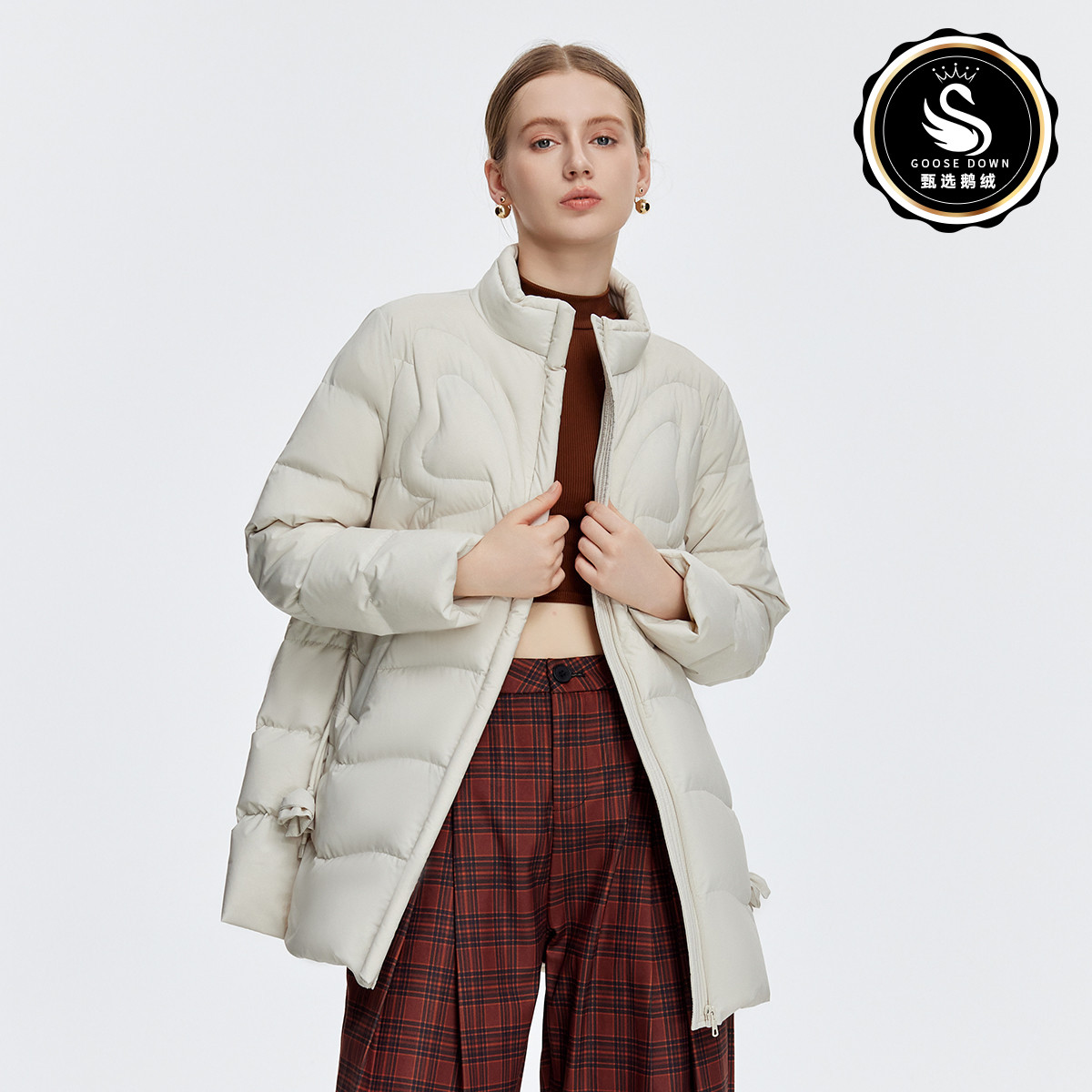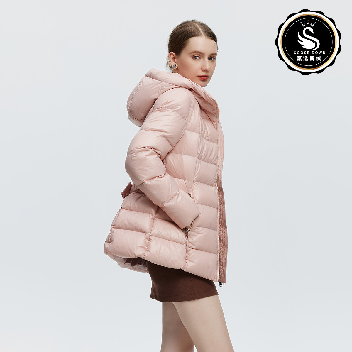 【90鸭绒】宽松中长款翻领收腰时尚保暖羽绒服女 578646