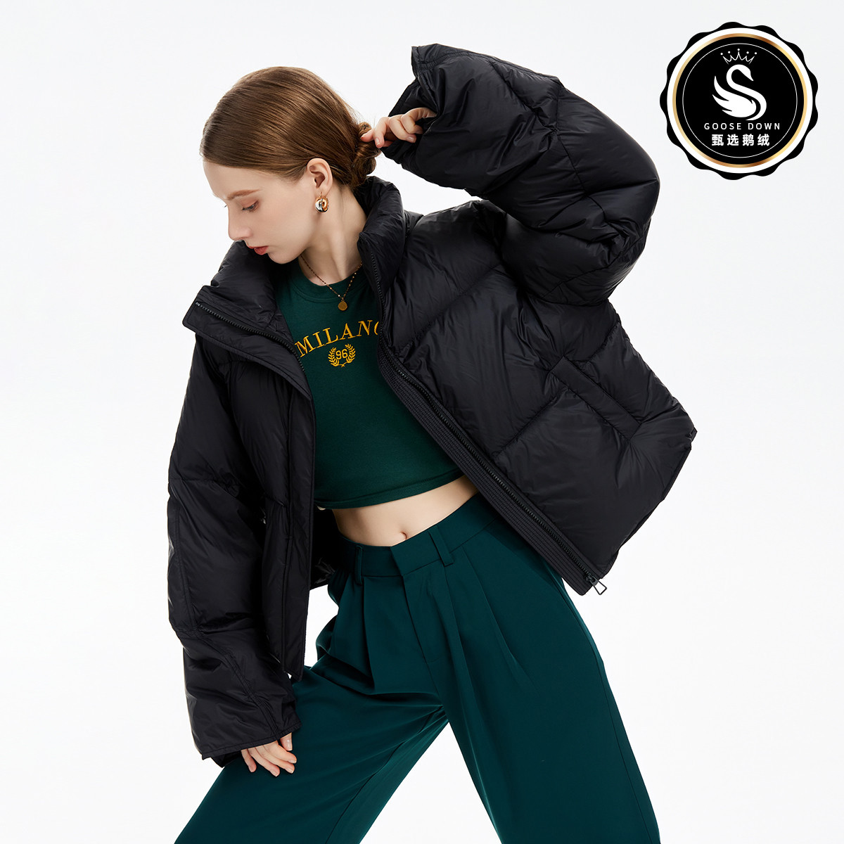 【鹅绒】软芙芙简约加厚百搭宽松女式短款保暖面包服 599647