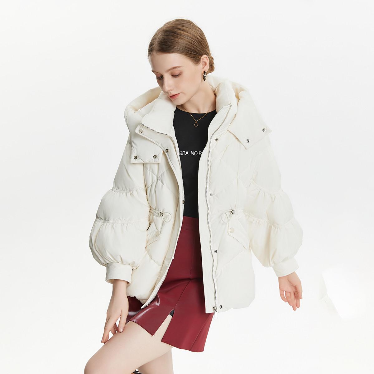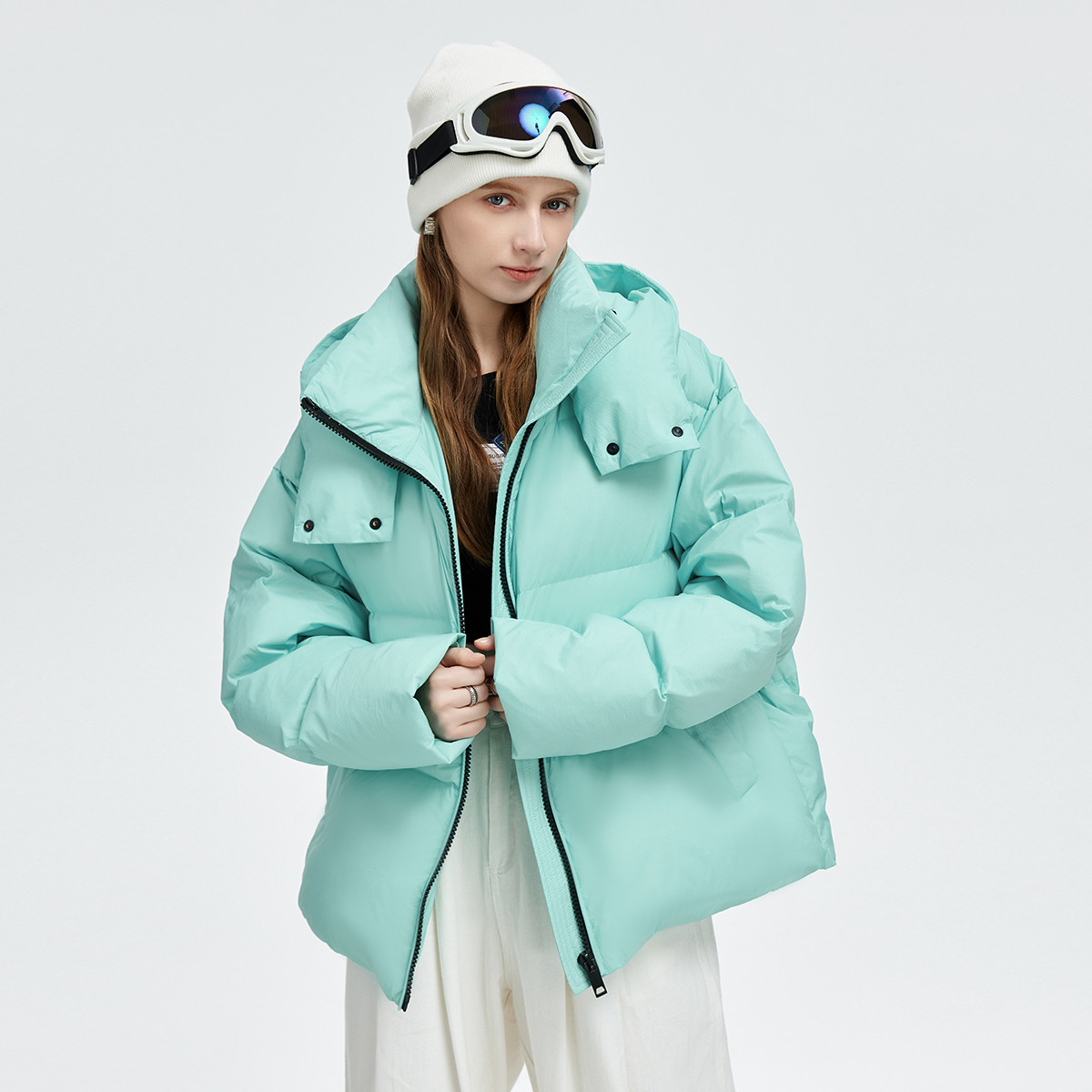 【鹅绒】厚款保暖连帽女士短款宽松休闲泡芙羽绒服 875871