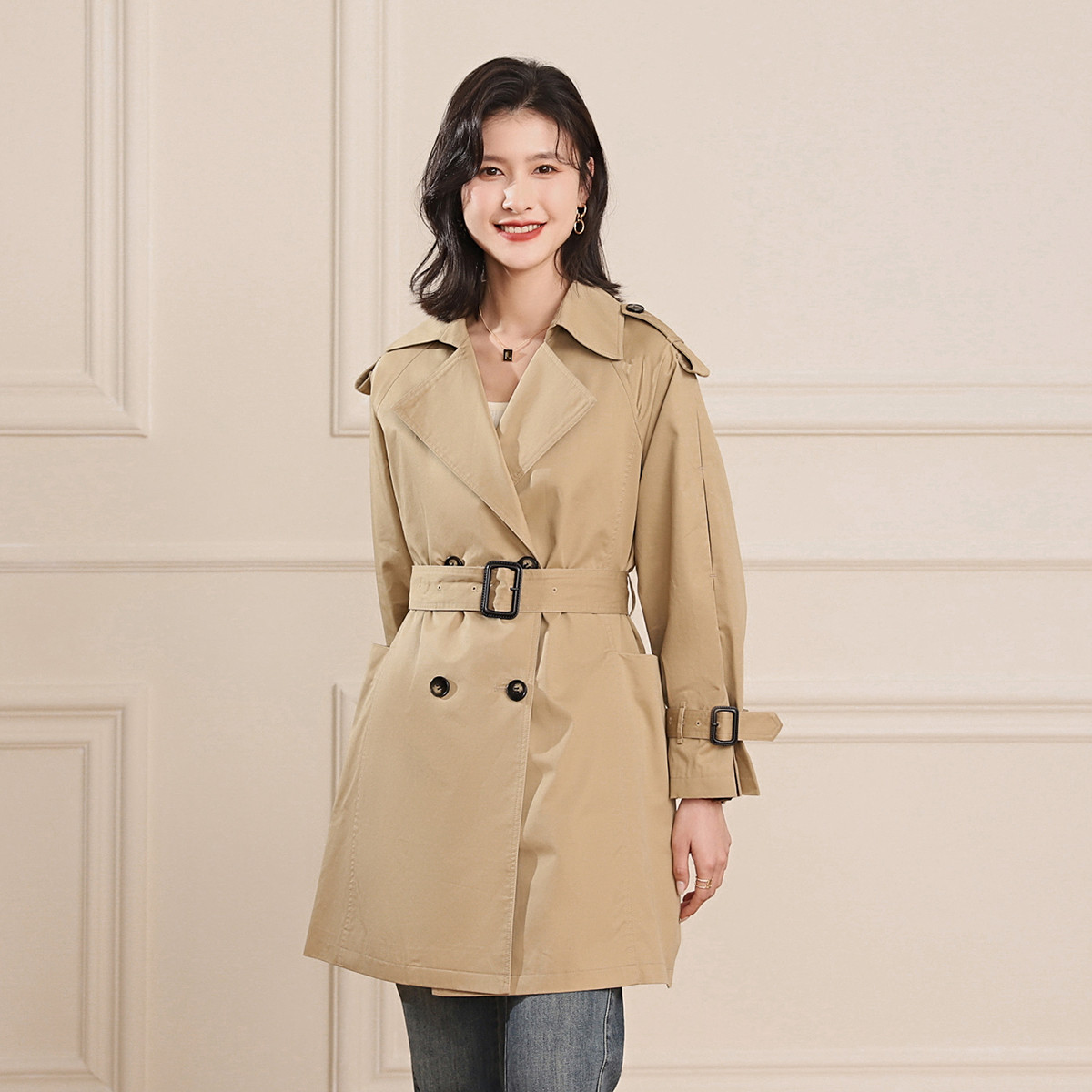 【英伦风袖口装饰】春秋通勤长袖双排扣中长款女式风衣外套 377631