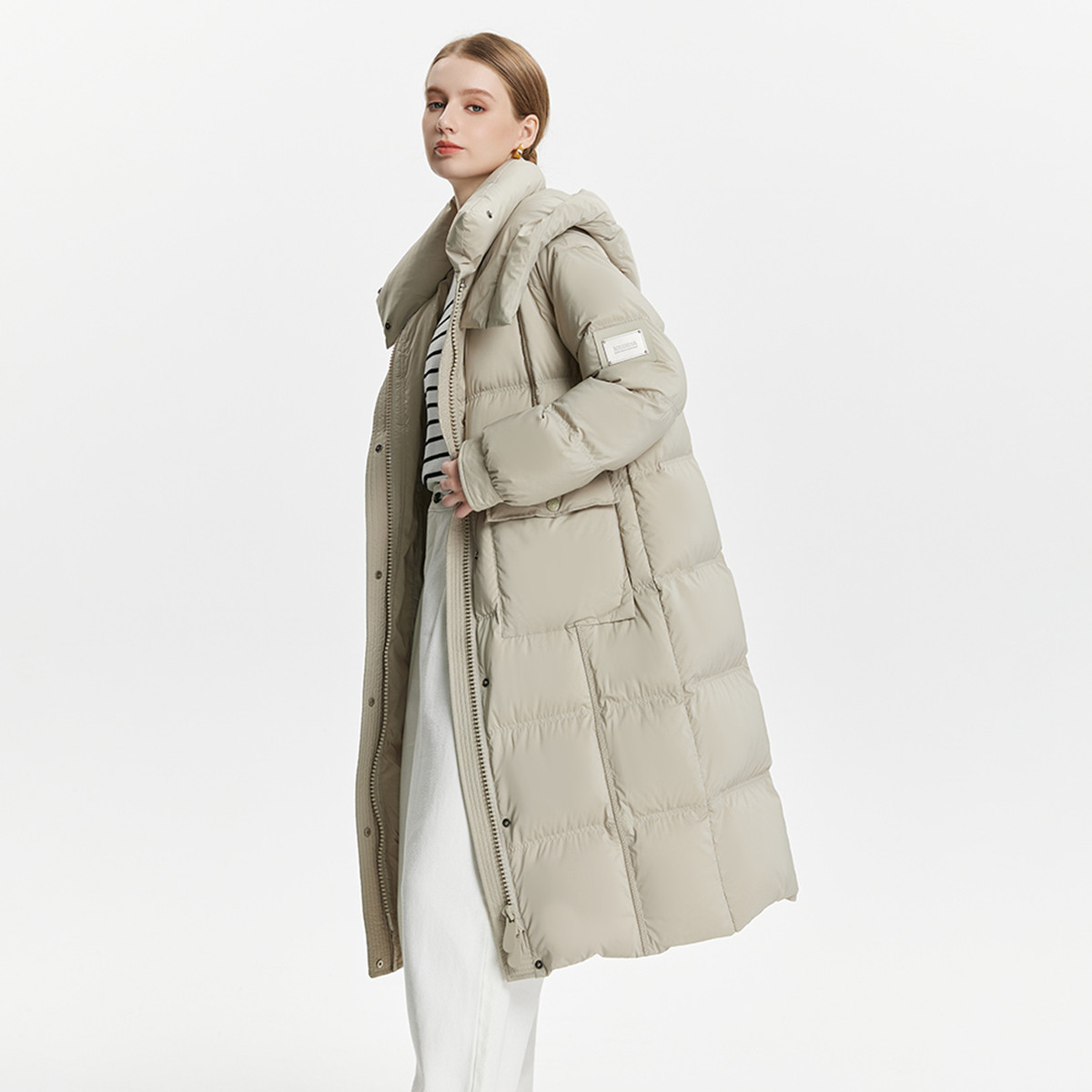 【鹅绒爆款】冬季女士长款羽绒服简约连帽防寒保暖极寒服 593759