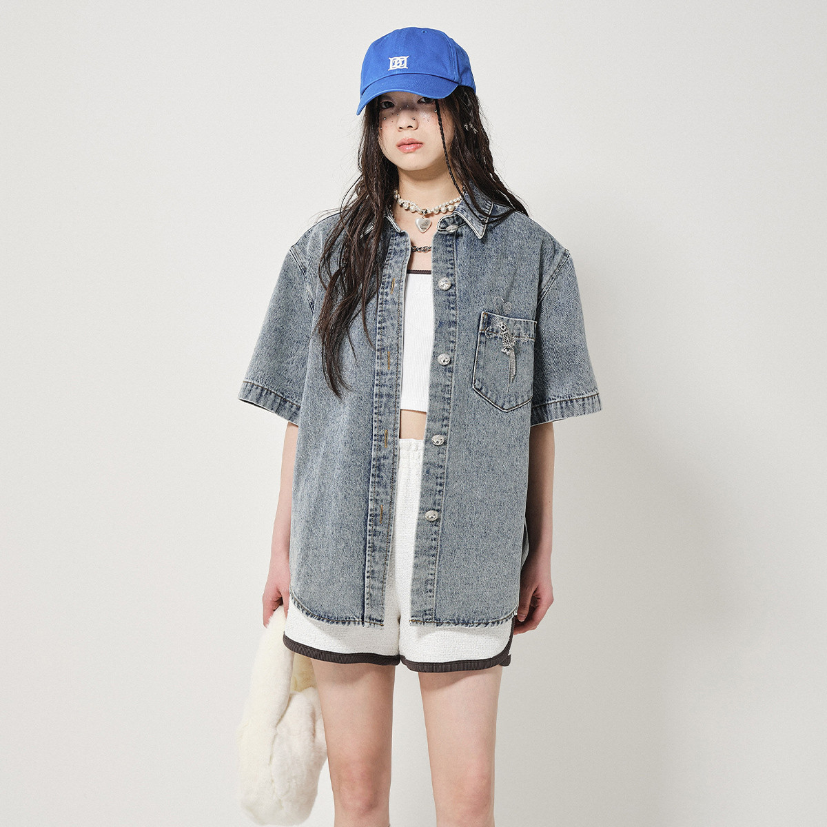 地素短外套春秋季专柜牛仔衬衫外套 064715
