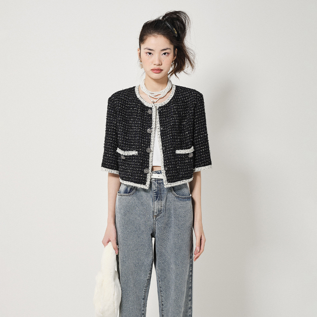 地素短外套夏秋季专柜小香风粗花呢短袖开衫外套女 892747