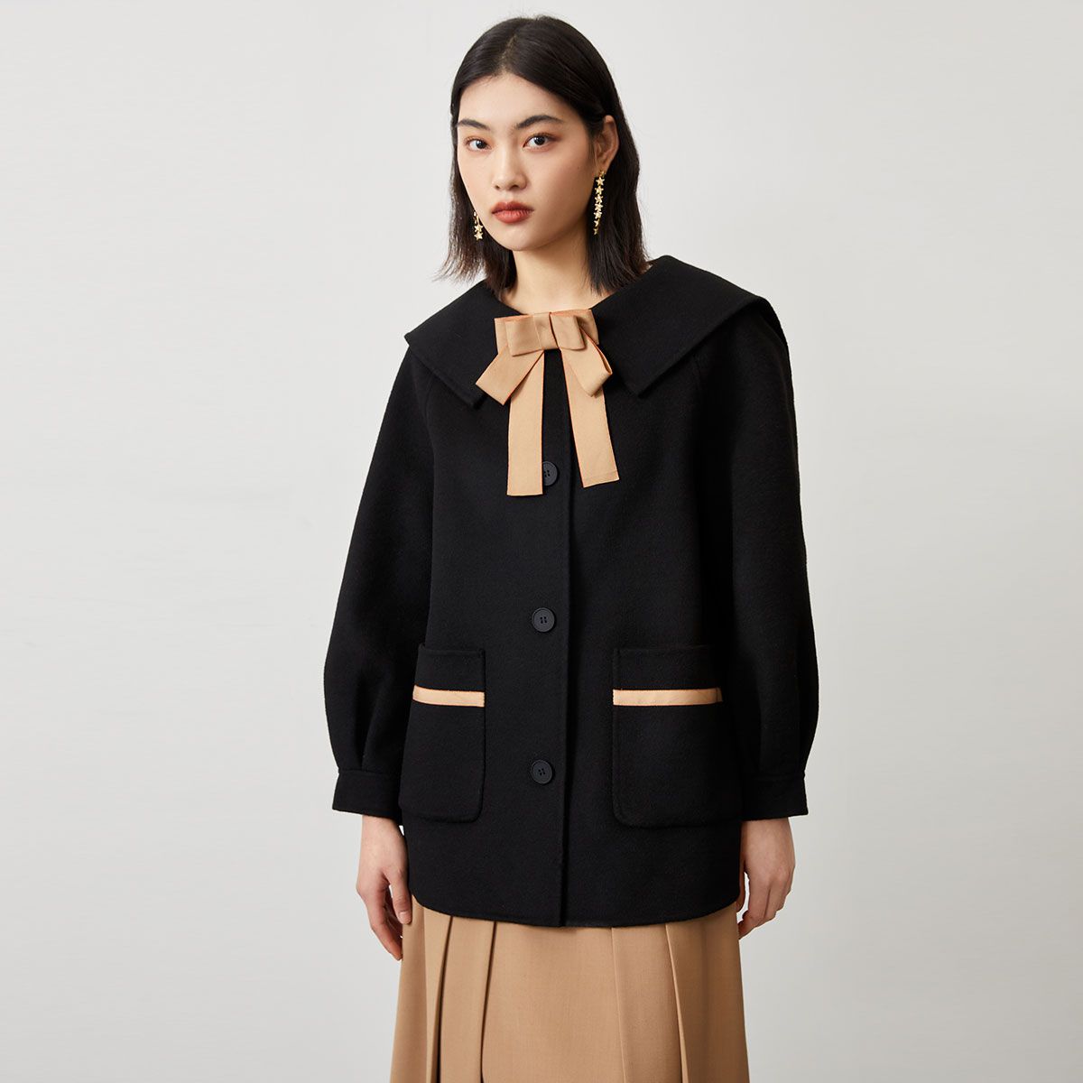 朗姿纯羊毛复古双面呢夹克高级感正肩毛呢冬季上衣 447257
