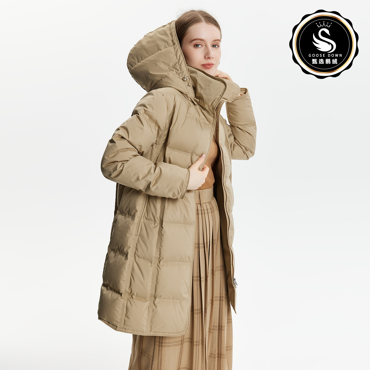 【90鸭绒】宽松中长款翻领收腰时尚保暖羽绒服女 578646