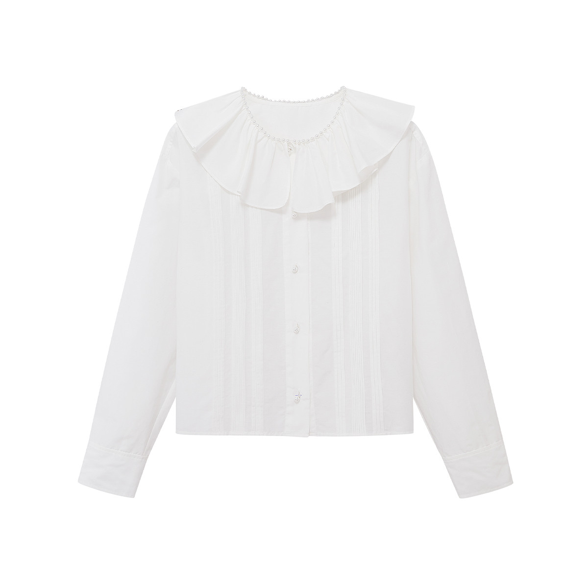 地素荷叶领衬衫春秋季复古宫廷长袖上衣女 949259