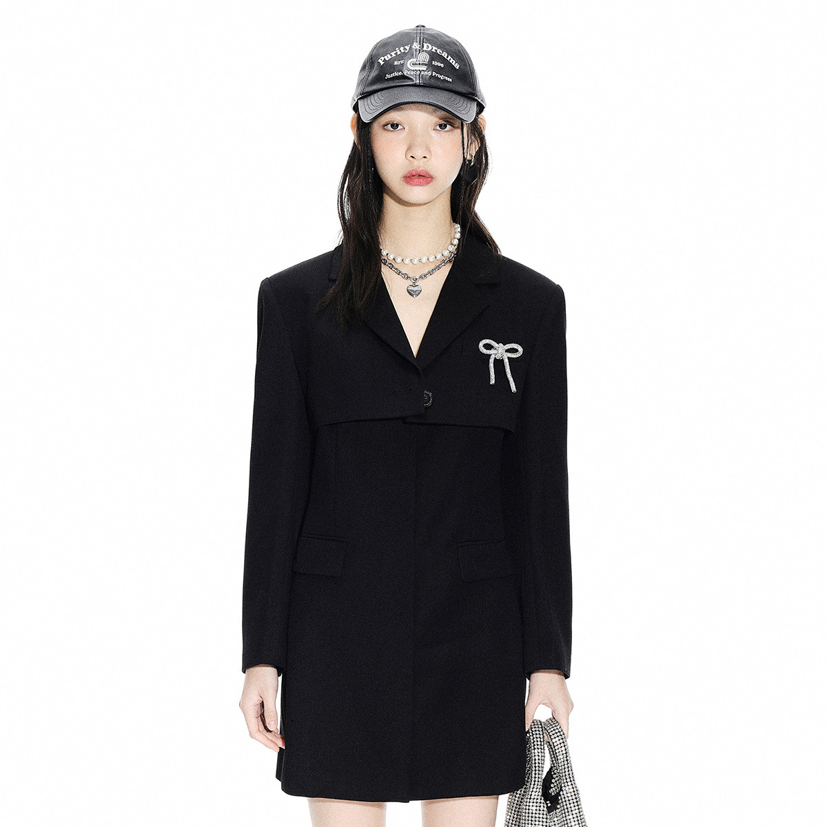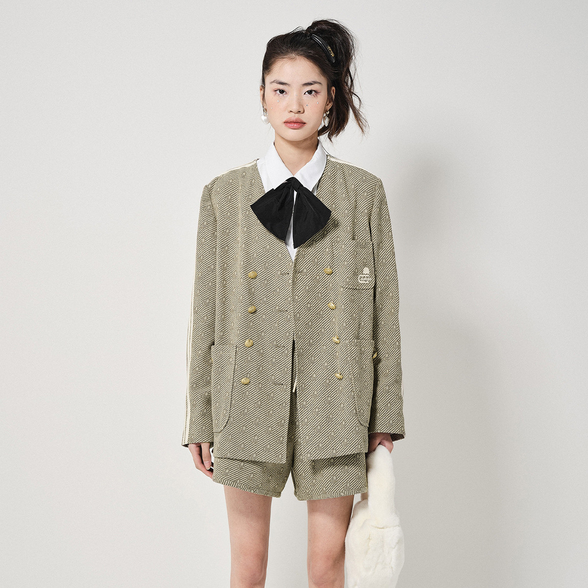 地素夏秋季专柜复古通勤蝴蝶结装饰短款西装外套 903371