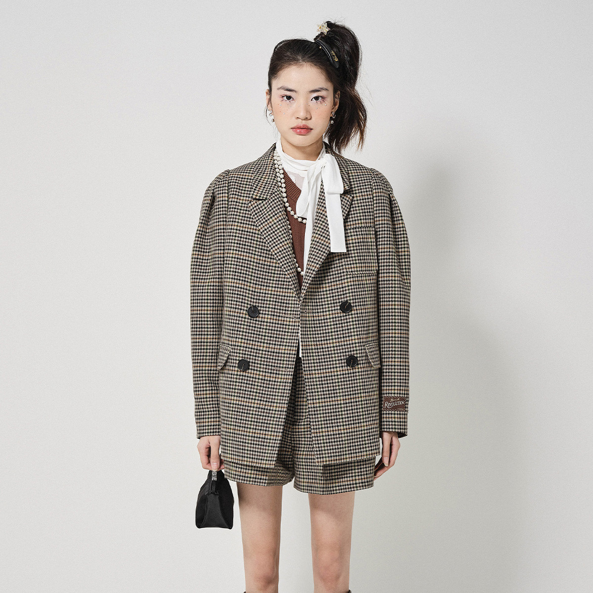 地素格子西装外套春秋专柜通勤千鸟格宽松女 037259