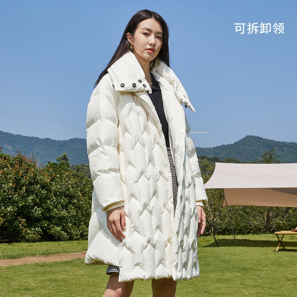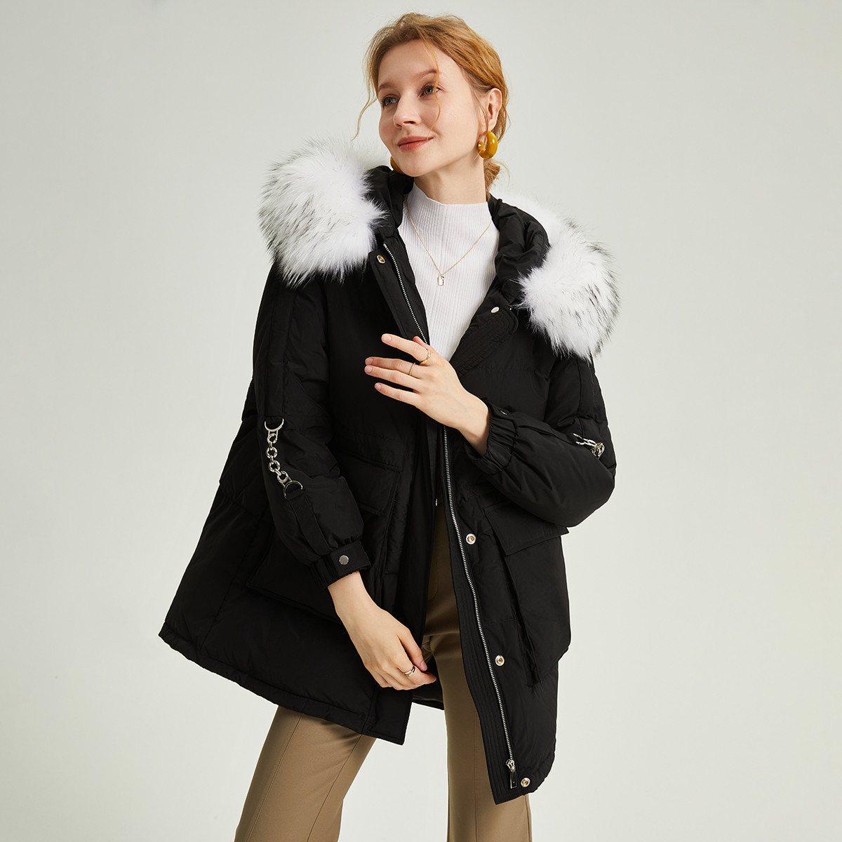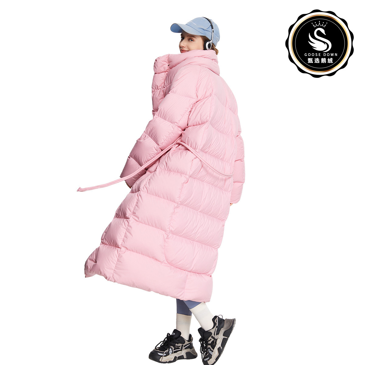 【90鸭绒】宽松中长款翻领收腰时尚保暖羽绒服女 578646