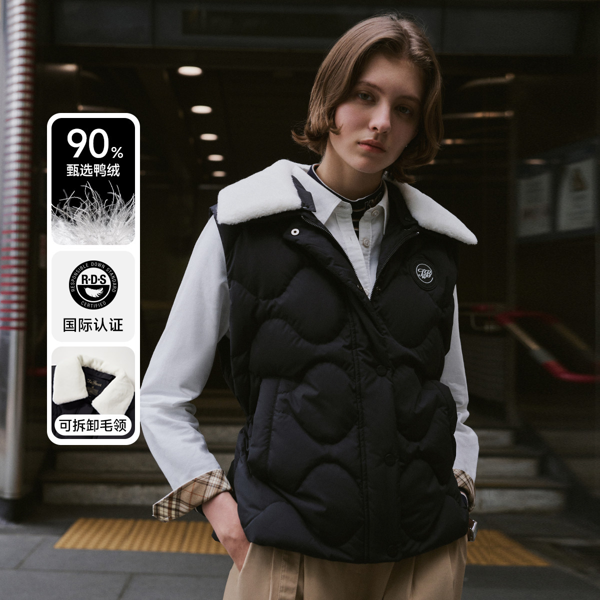 小熊冬季短款黑色轻薄羽绒马甲背心外套保暖女小个子 454529