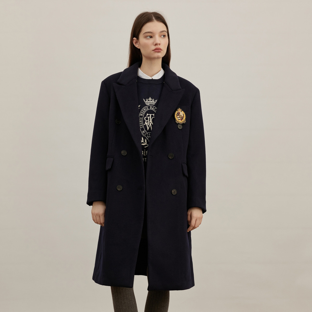 小熊早秋绵羊毛宽松长款驳领毛呢外套女装 779585