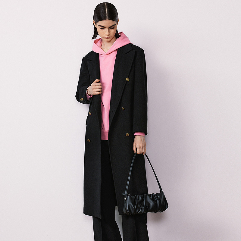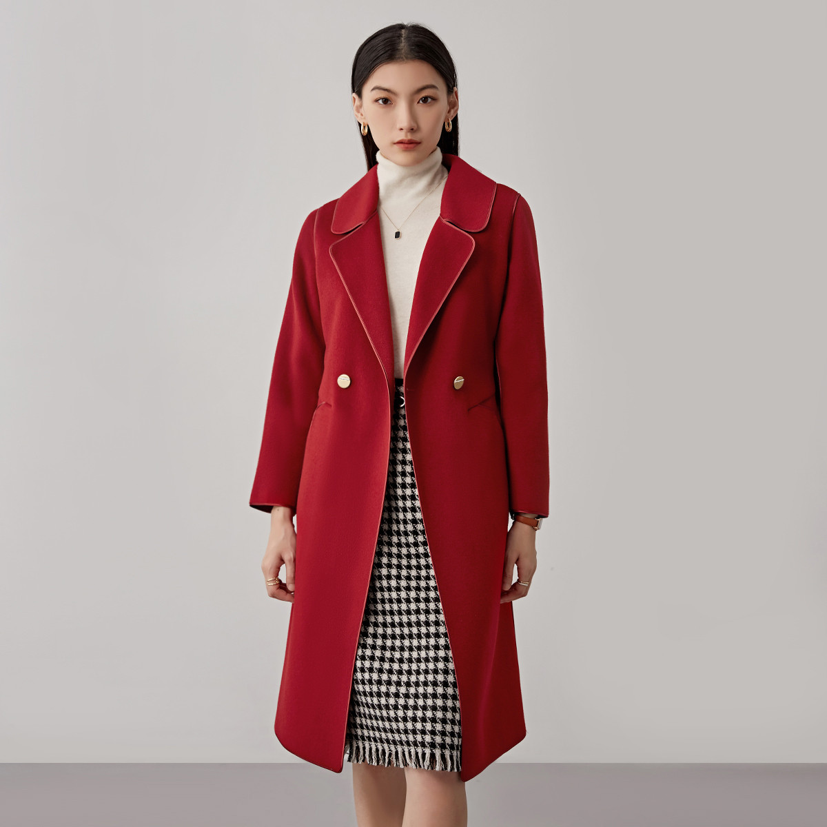 秋冬气质温柔100%羊毛大衣女式休闲通勤长款毛呢外套 714783