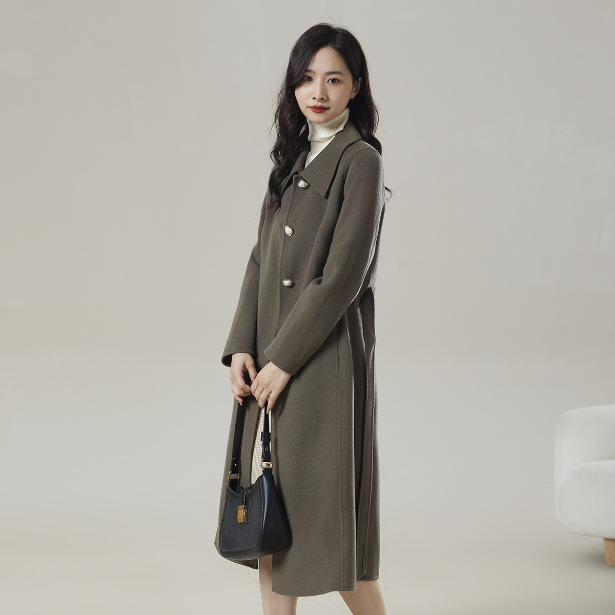 秋冬系带100%绵羊毛大衣女式长款休闲显瘦双面呢外套 934879