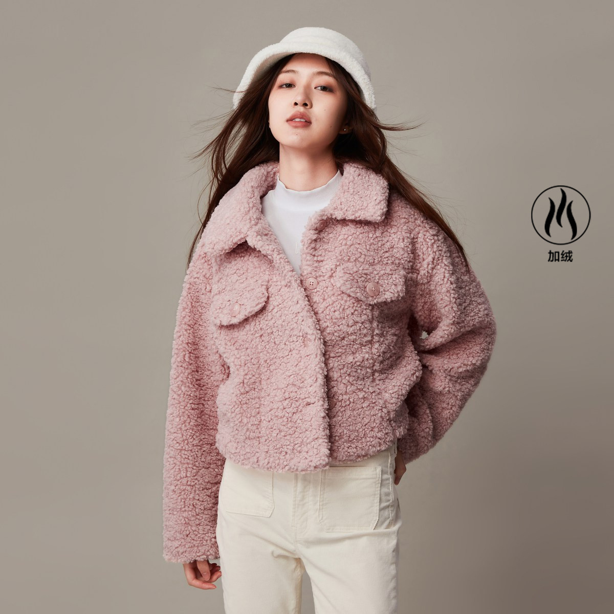 Gap女装秋冬季仿羊羔绒纽扣短款夹克891881宽松廓形外套 161242