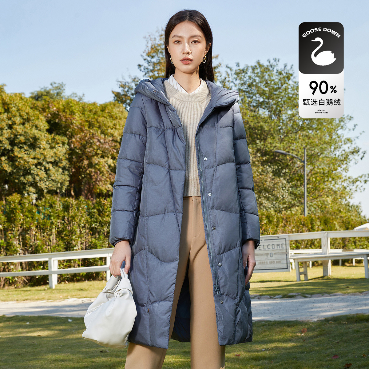 【鹅绒爆款】冬季女士长款羽绒服简约连帽防寒保暖极寒服 593759