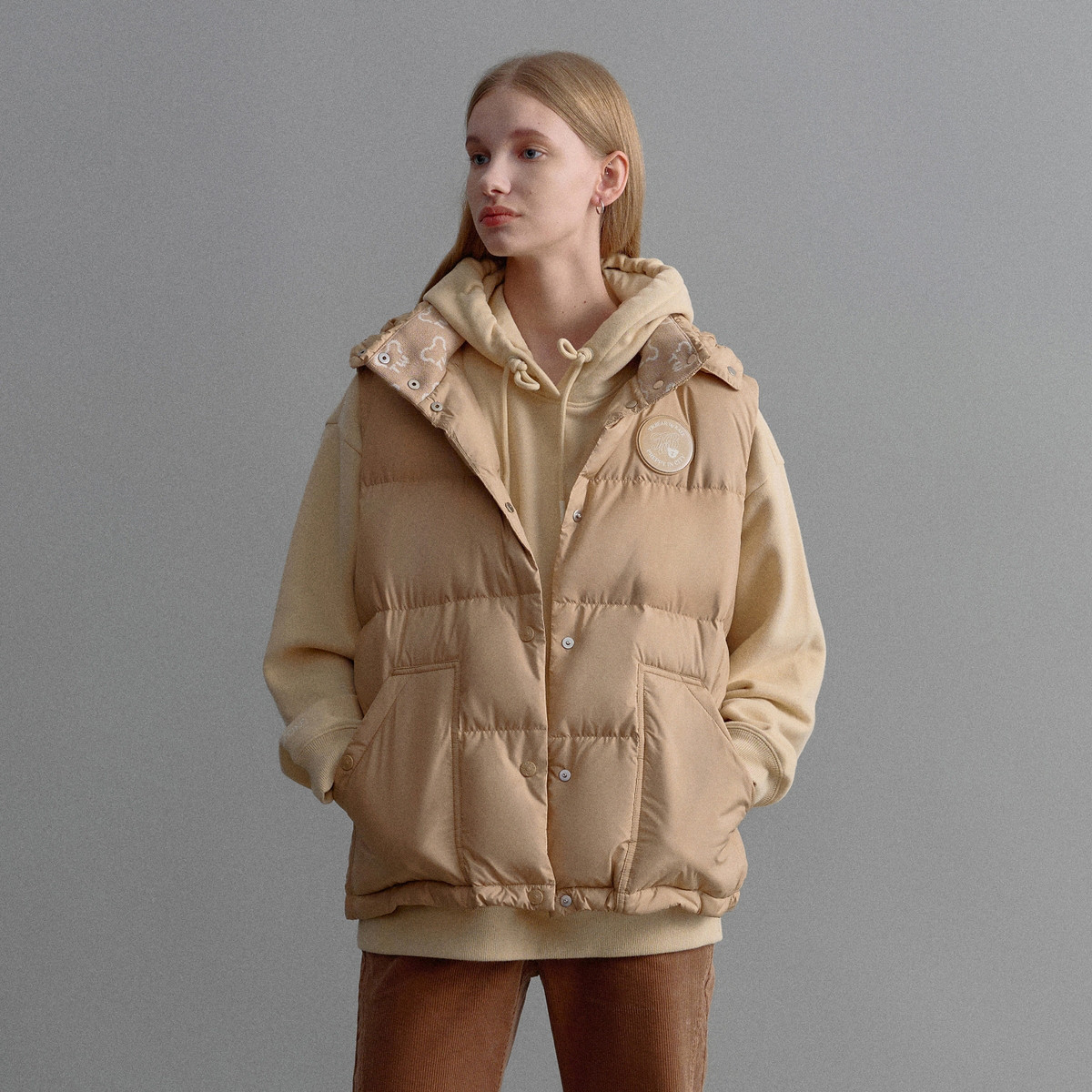 羽绒马甲女秋冬学院风简约连帽羽绒马甲保暖外套女 997377