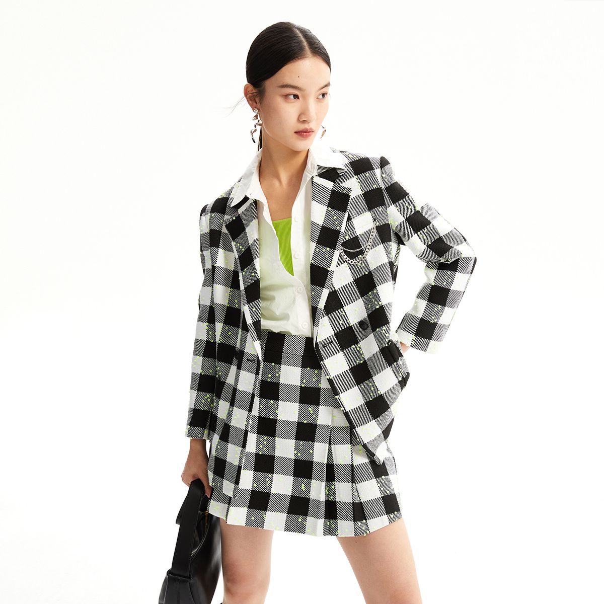 PORTS宝姿女装春季时尚个性Crop Top格纹短西装 661194