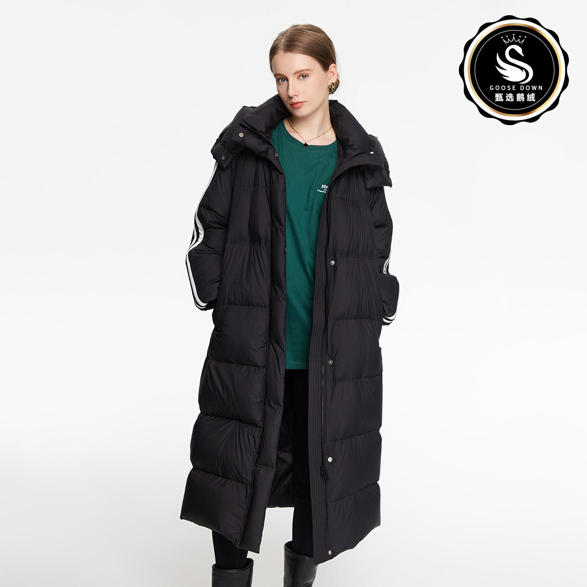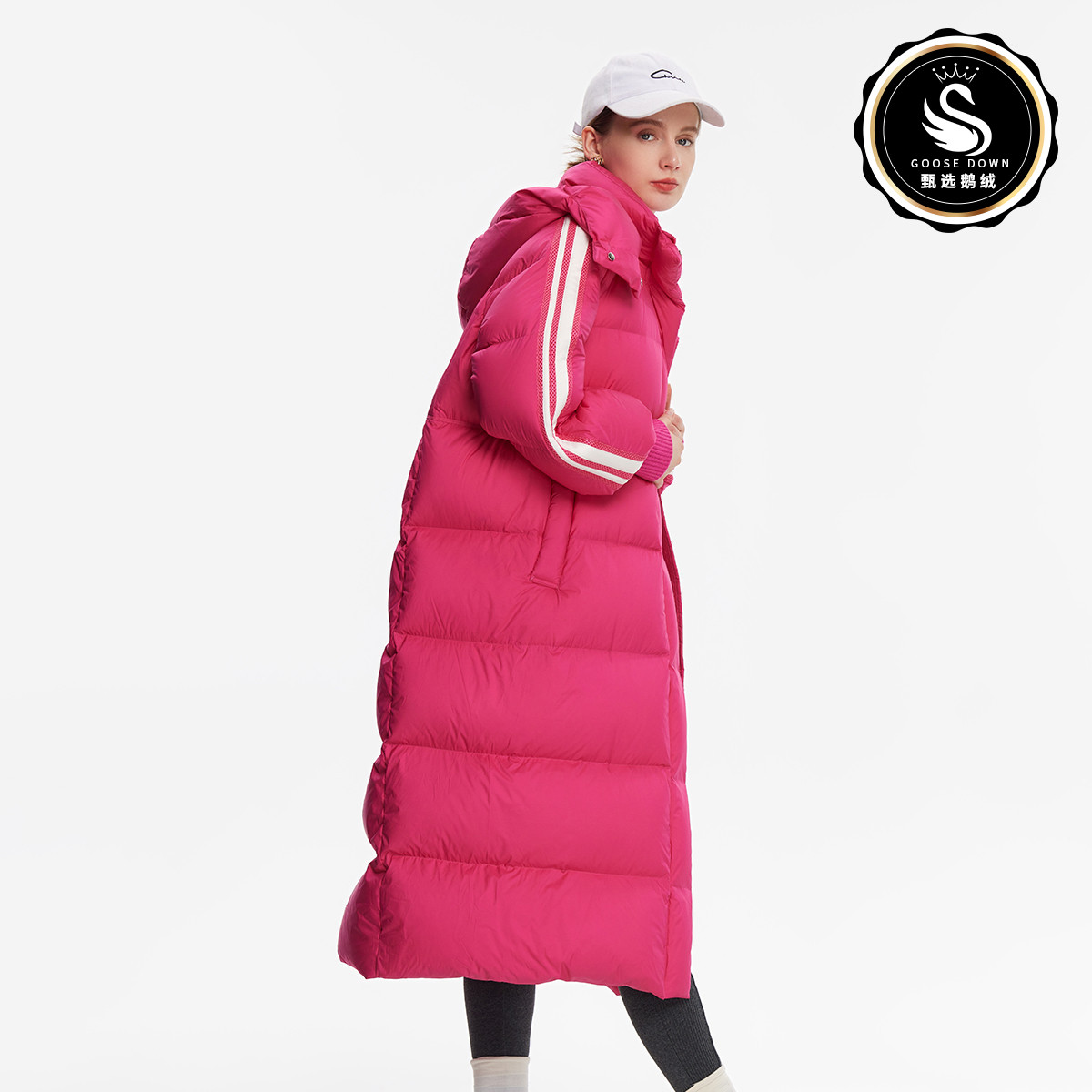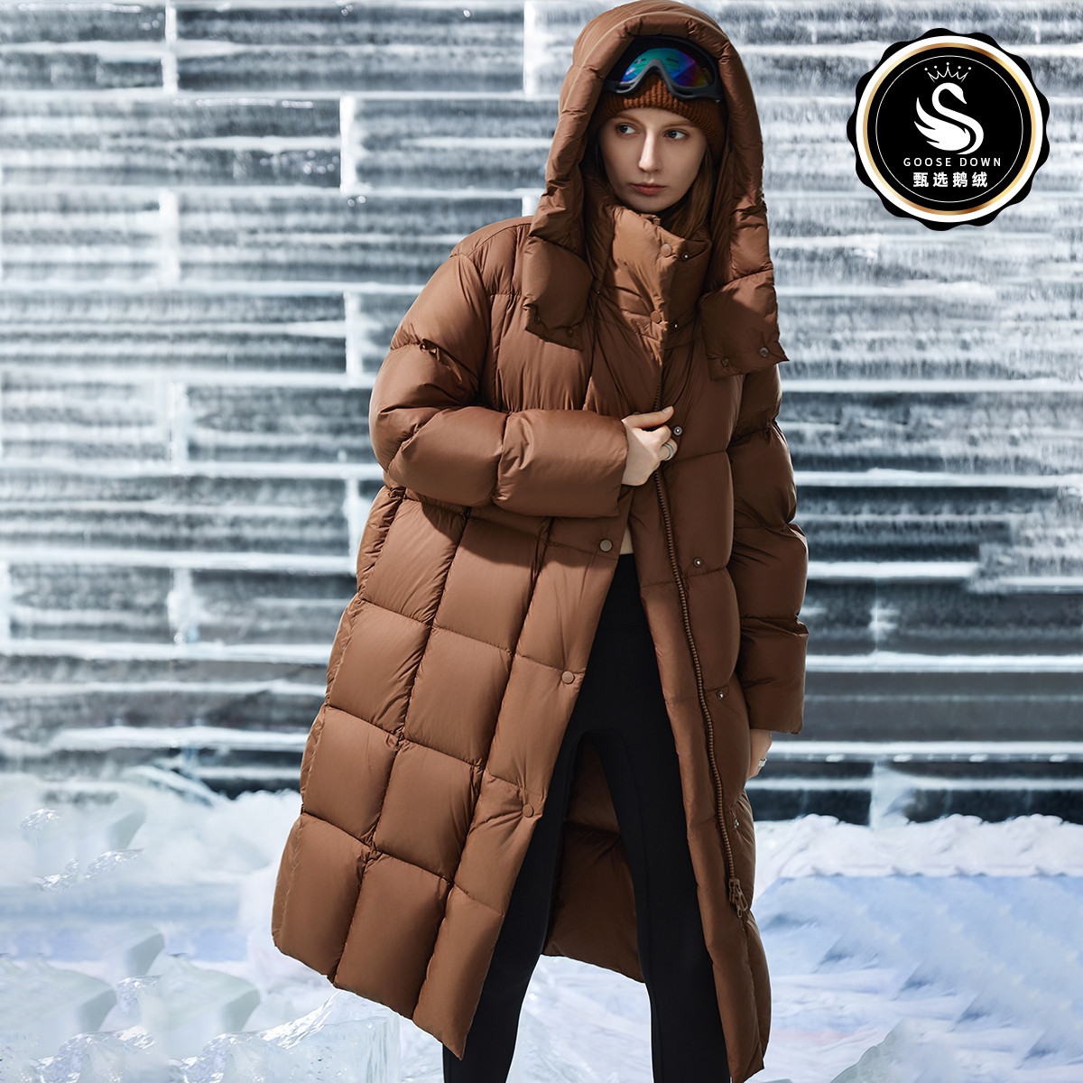【鹅绒爆款】冬季女士长款羽绒服简约连帽防寒保暖极寒服 593759