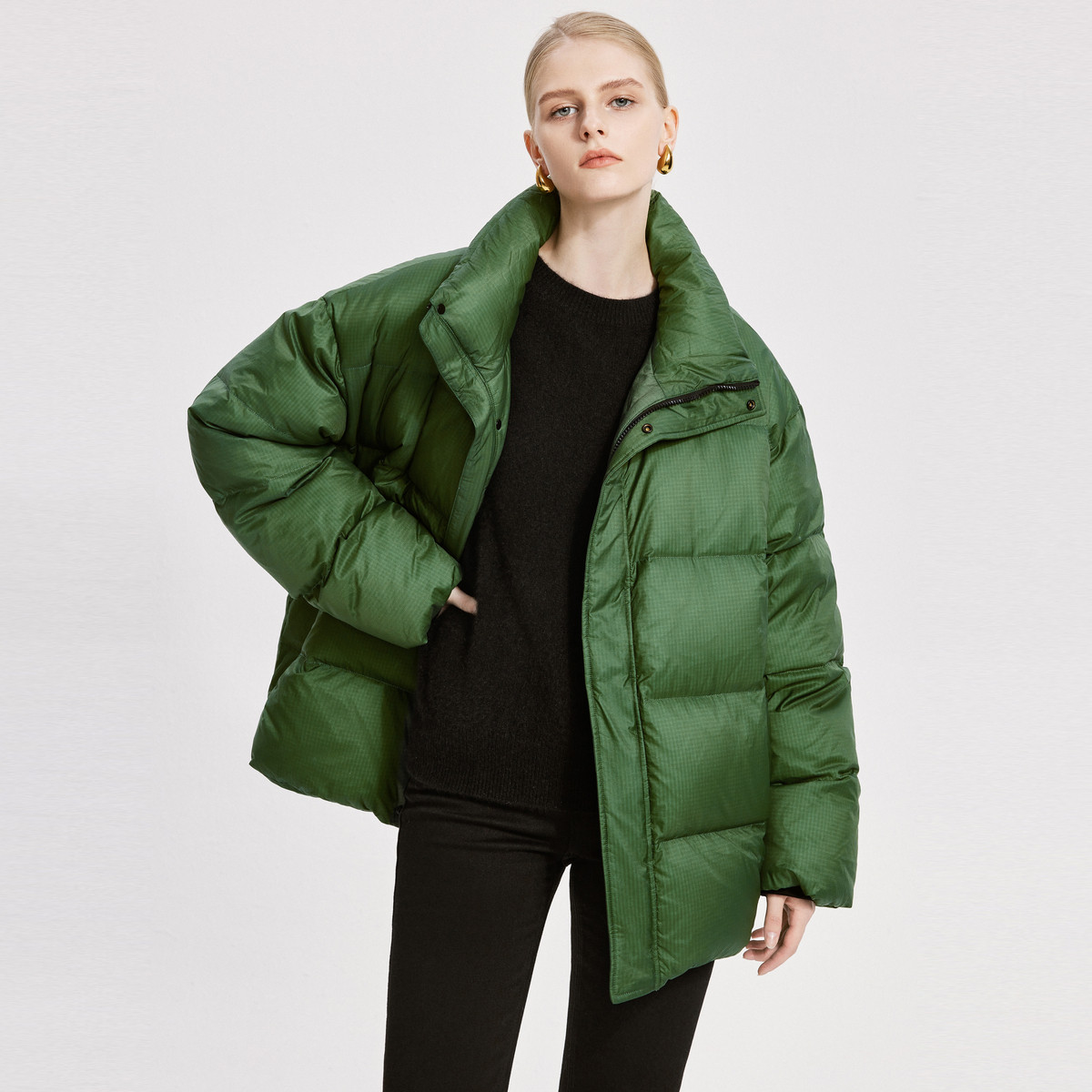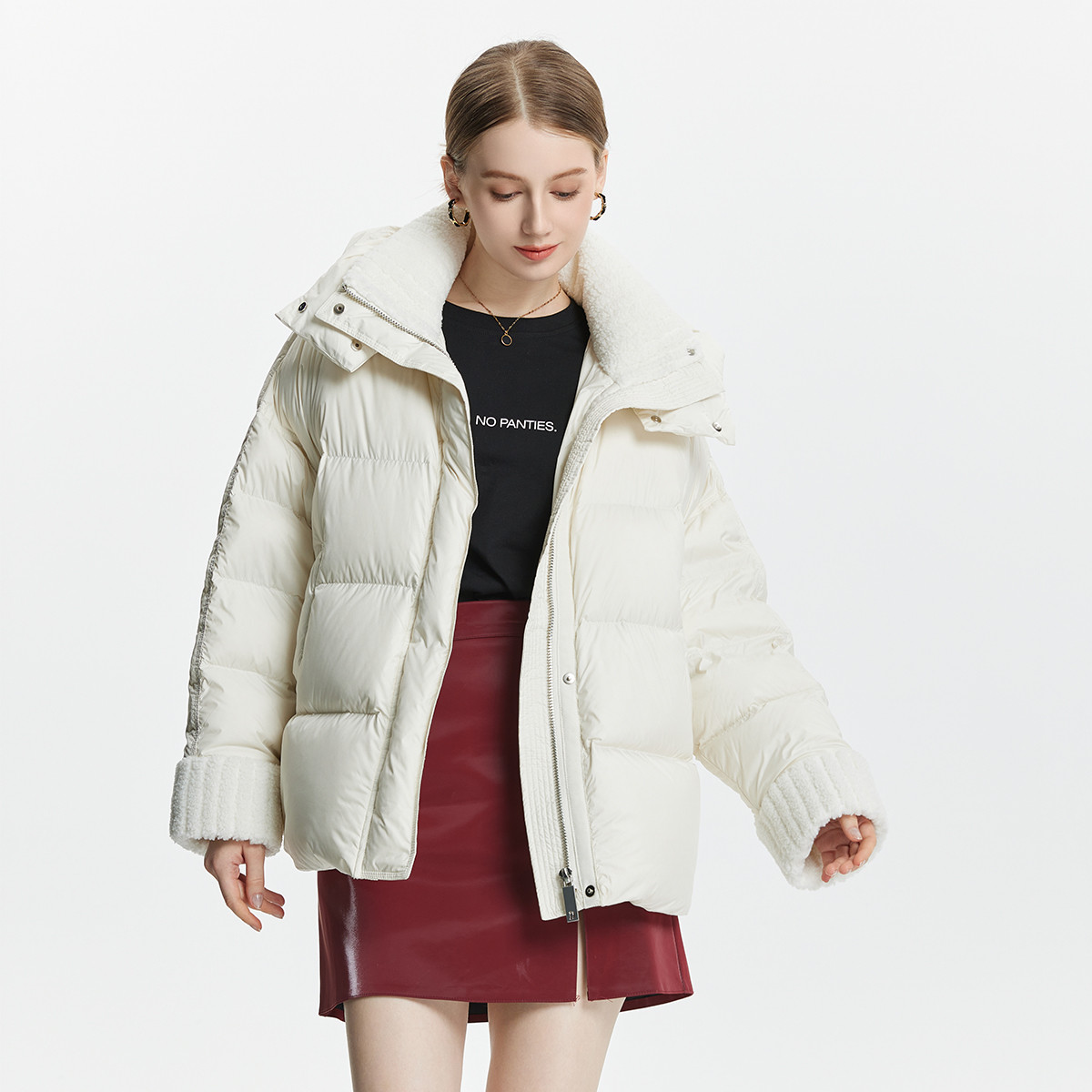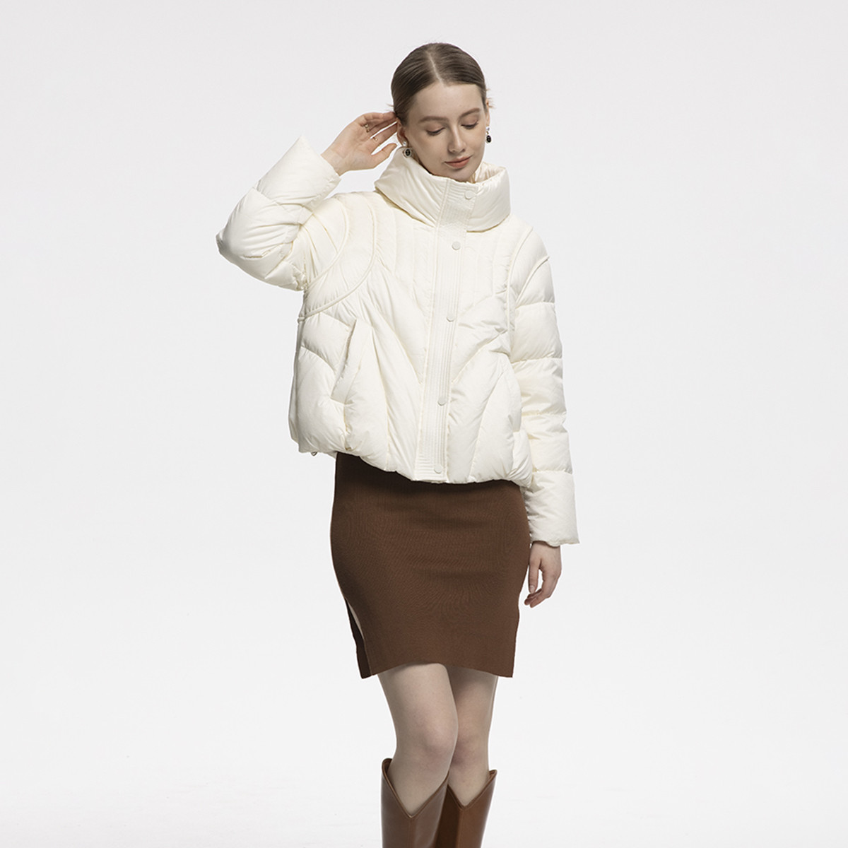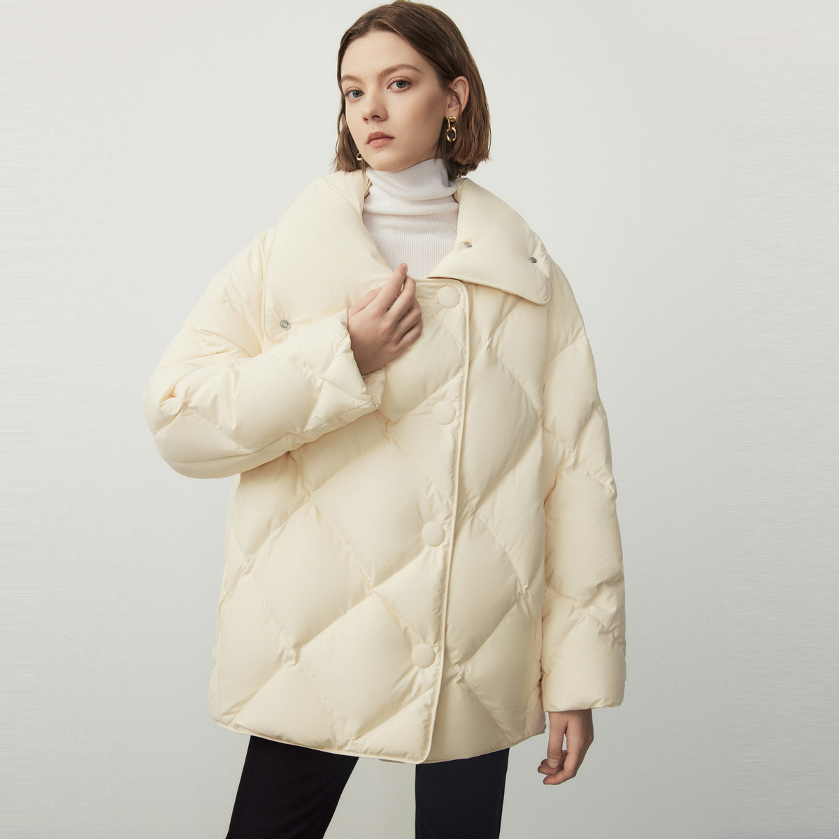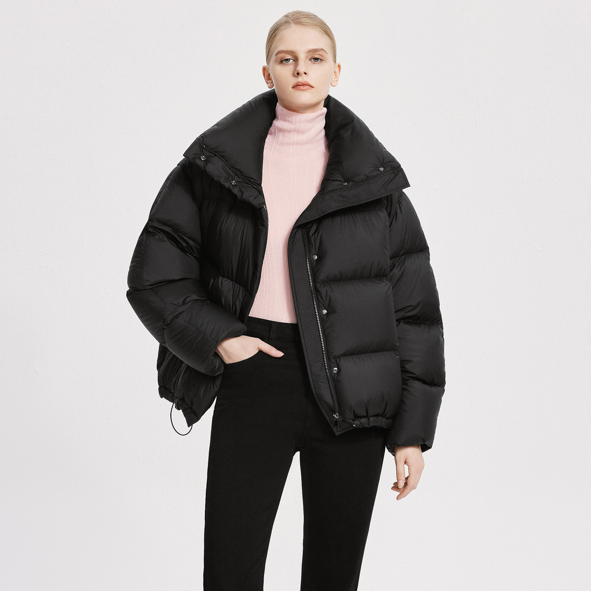 休闲纯色系90绒面包服女式立领宽松廓形短款羽绒服 413151