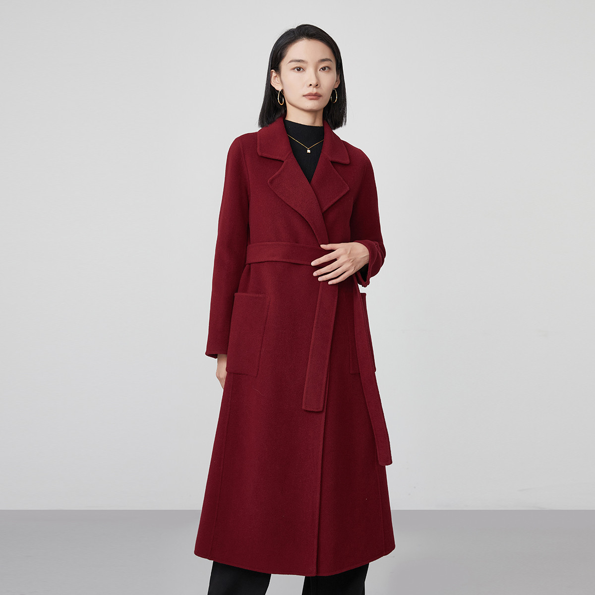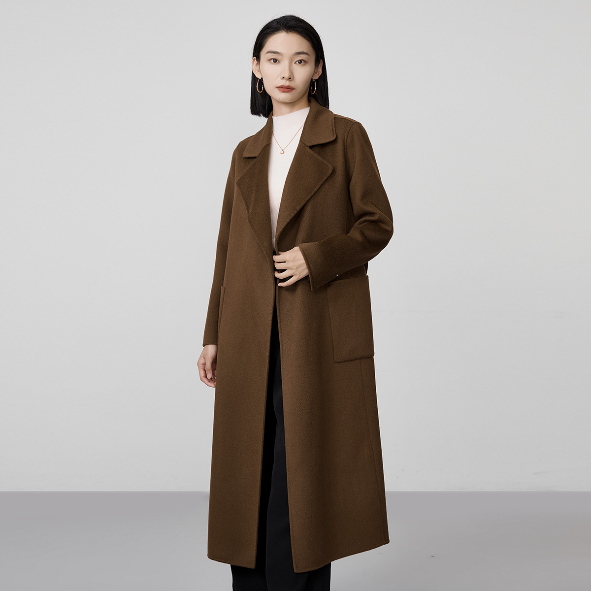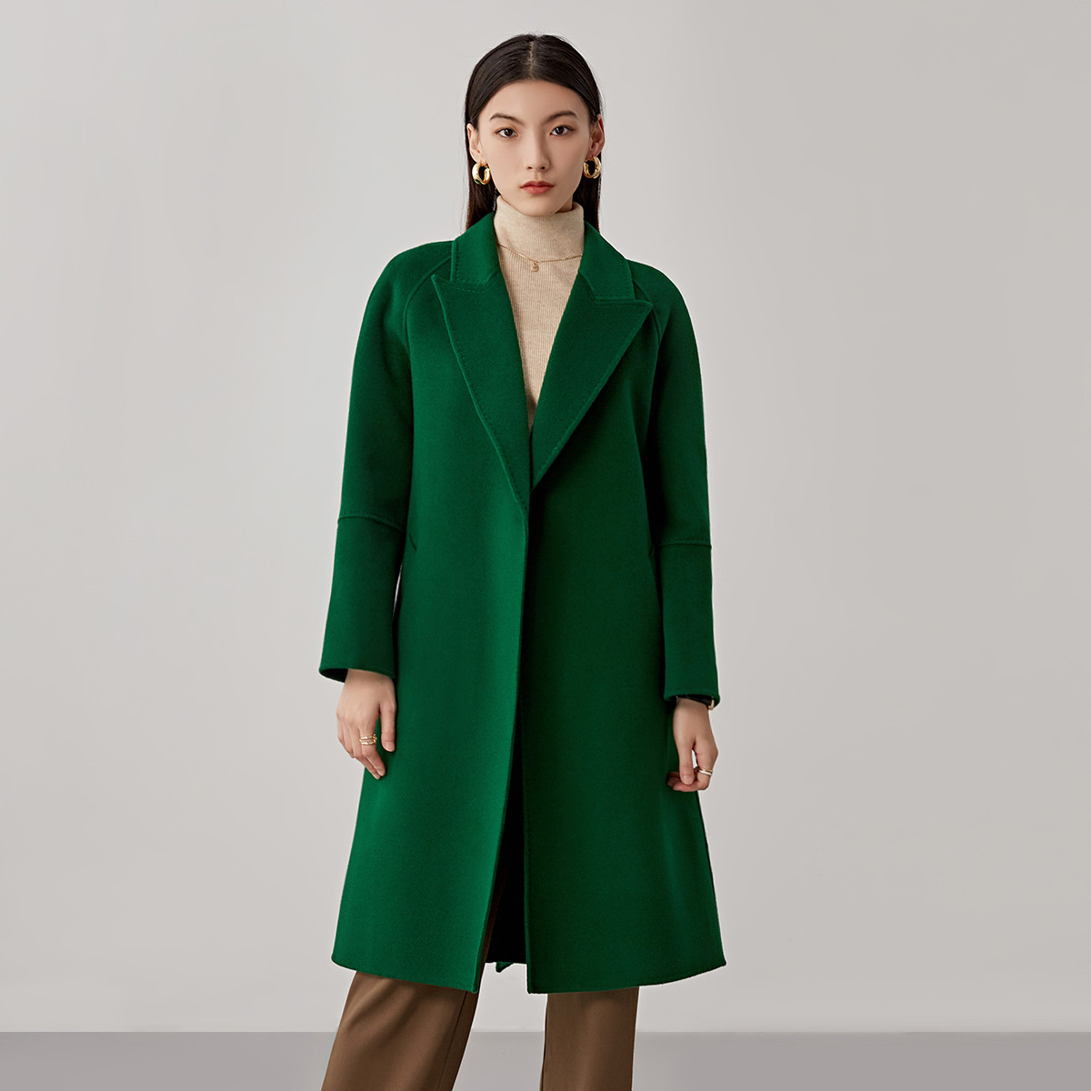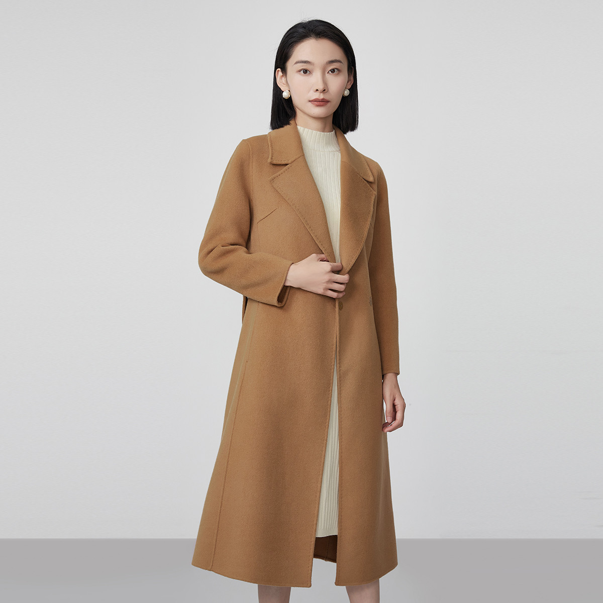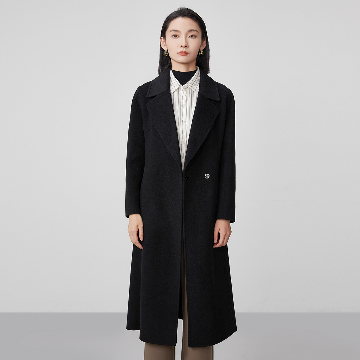 秋冬100%绵羊毛双面呢大衣女式纯色百搭长款外套 947167