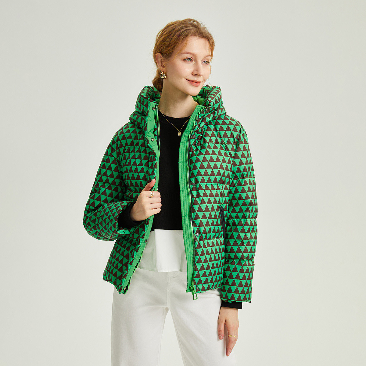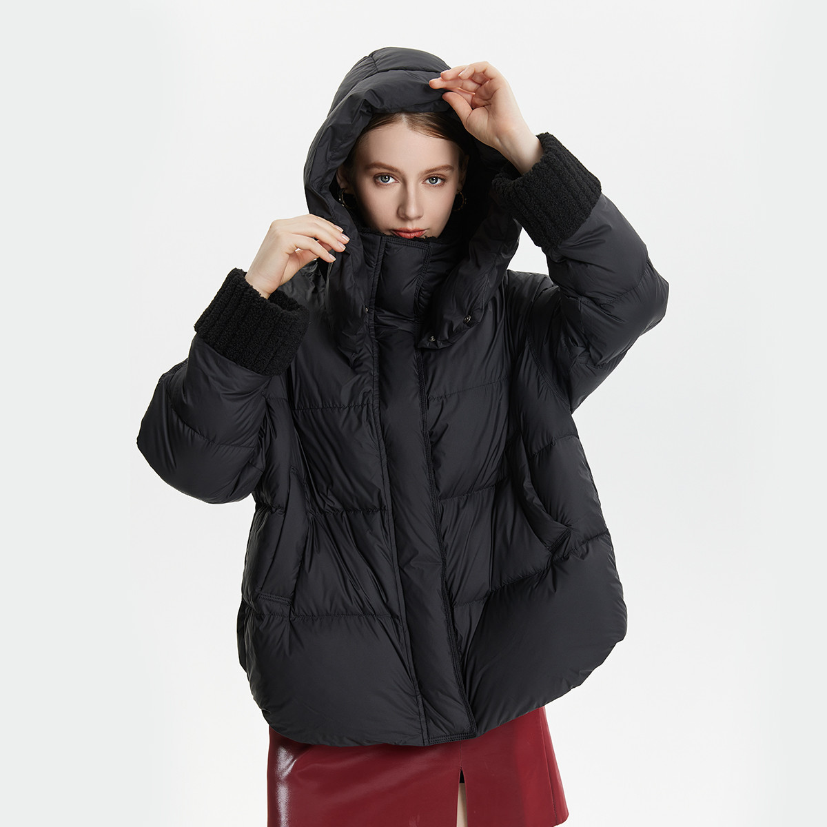 【鹅绒】厚款保暖连帽女士短款宽松休闲泡芙羽绒服 875871