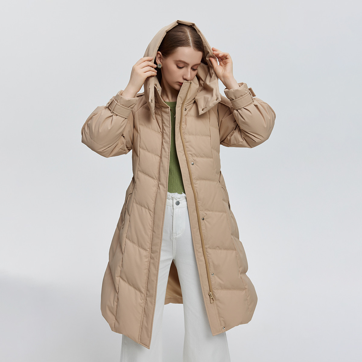 【鹅绒】莫兰迪色纯系女式加厚款连帽中长款宽松羽绒服 938847