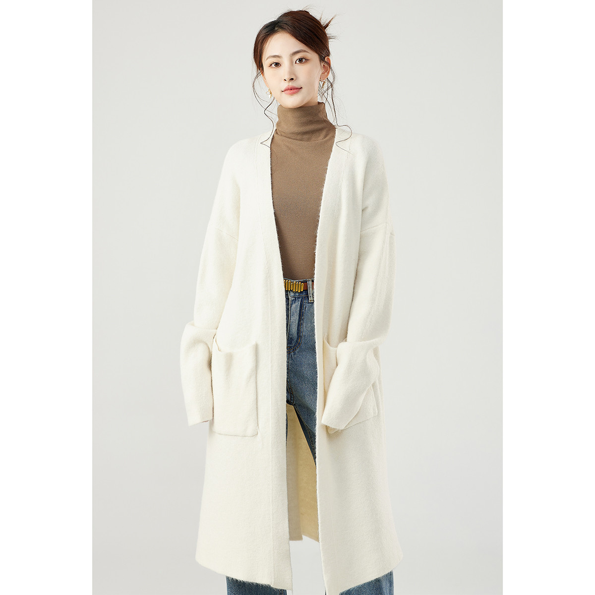 冬季纯色宽松慵懒风中长款毛衣针织开衫外套女秋冬 676255