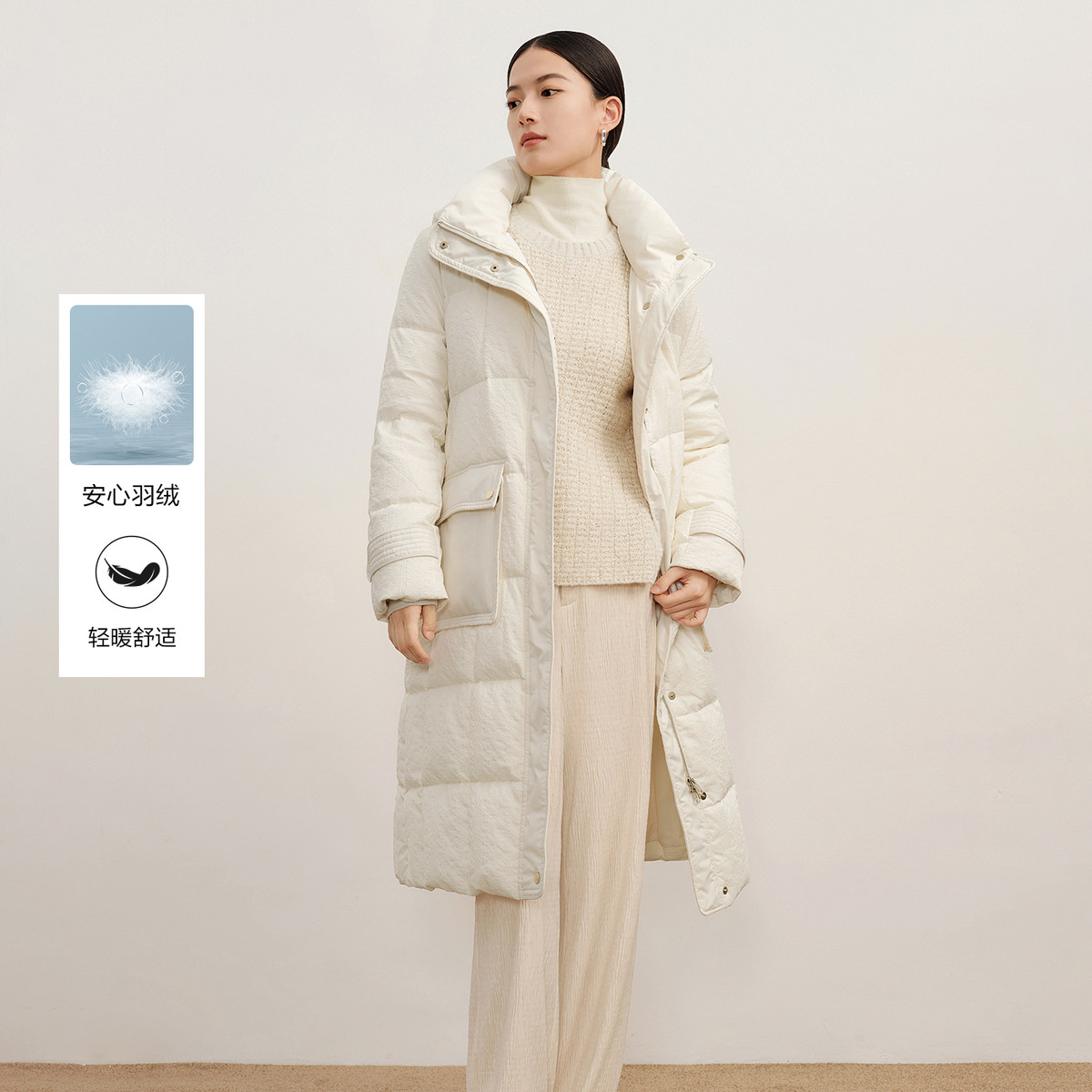 玖姿旗下安娜蔻系列肌理温柔风帽领羽绒长款女冬季 865420