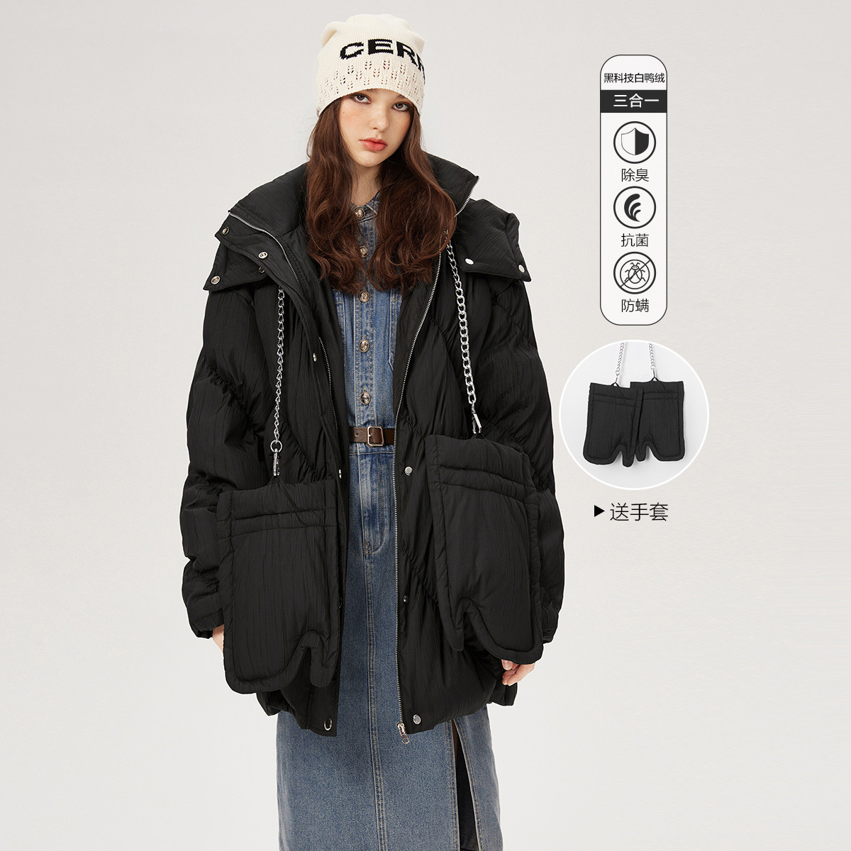 【鹅绒】厚款保暖连帽女士短款宽松休闲泡芙羽绒服 875871