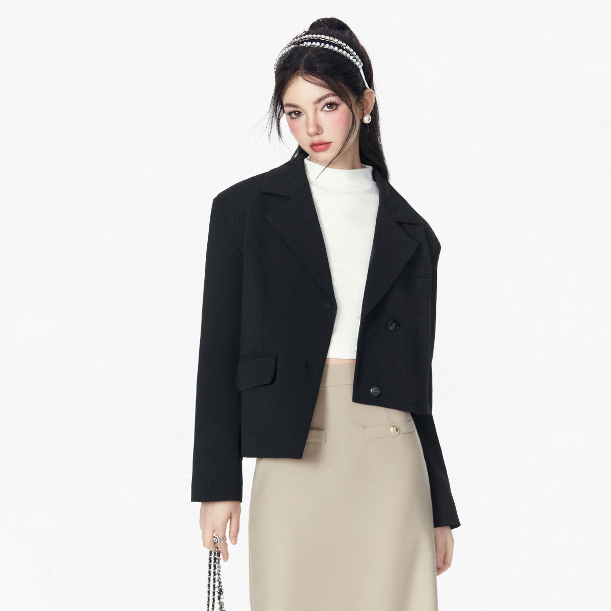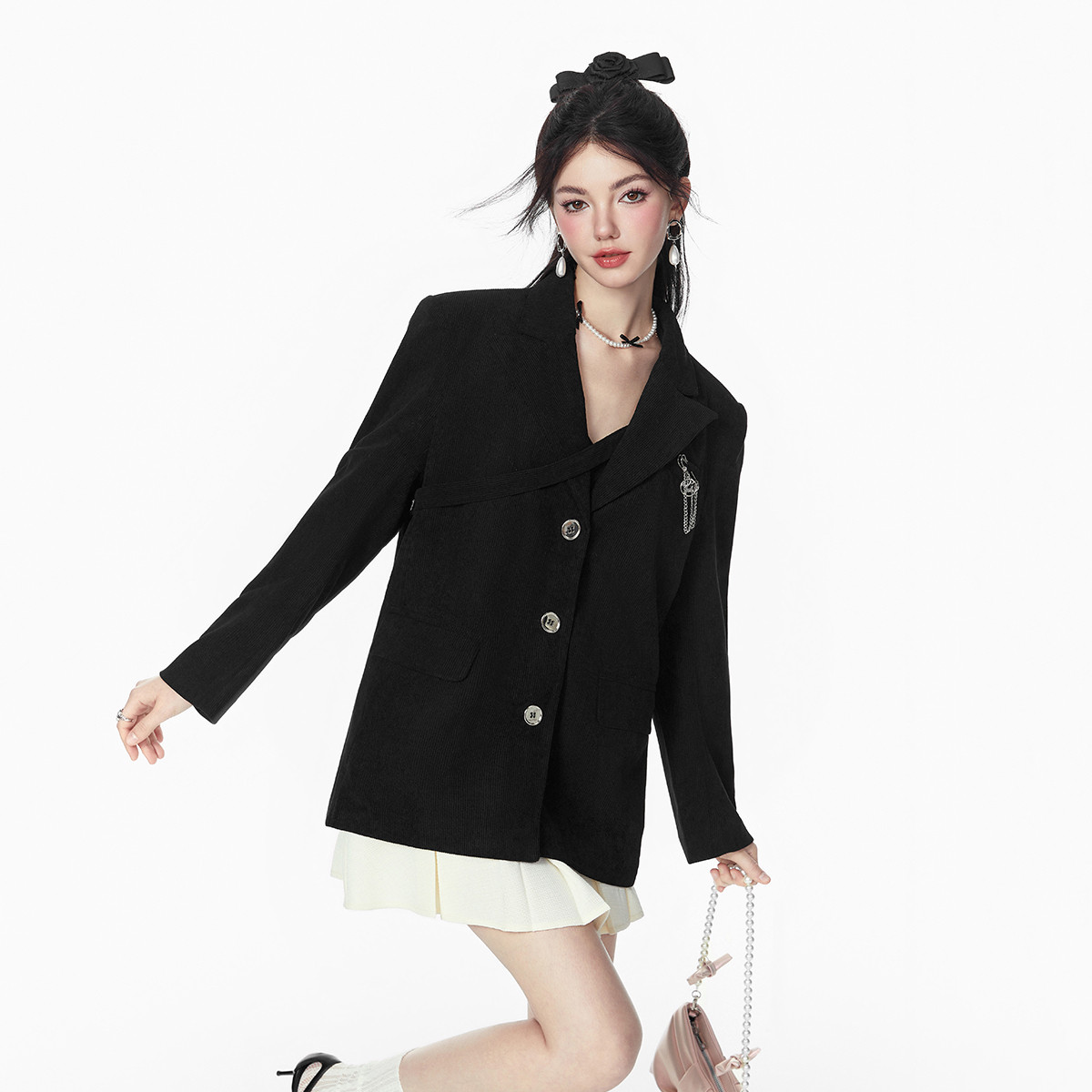 可拆卸胸针春秋高级黑色西装女设计感小众长袖外套 515668