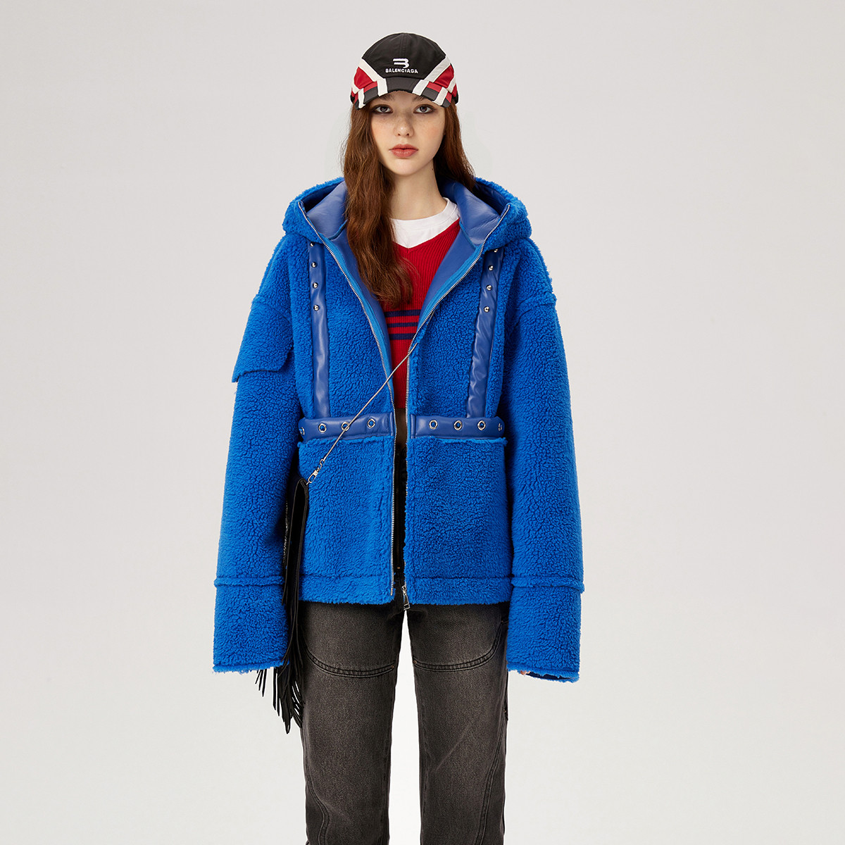 冬季连帽外套女防风设计小众保暖复合毛绒上衣 505044