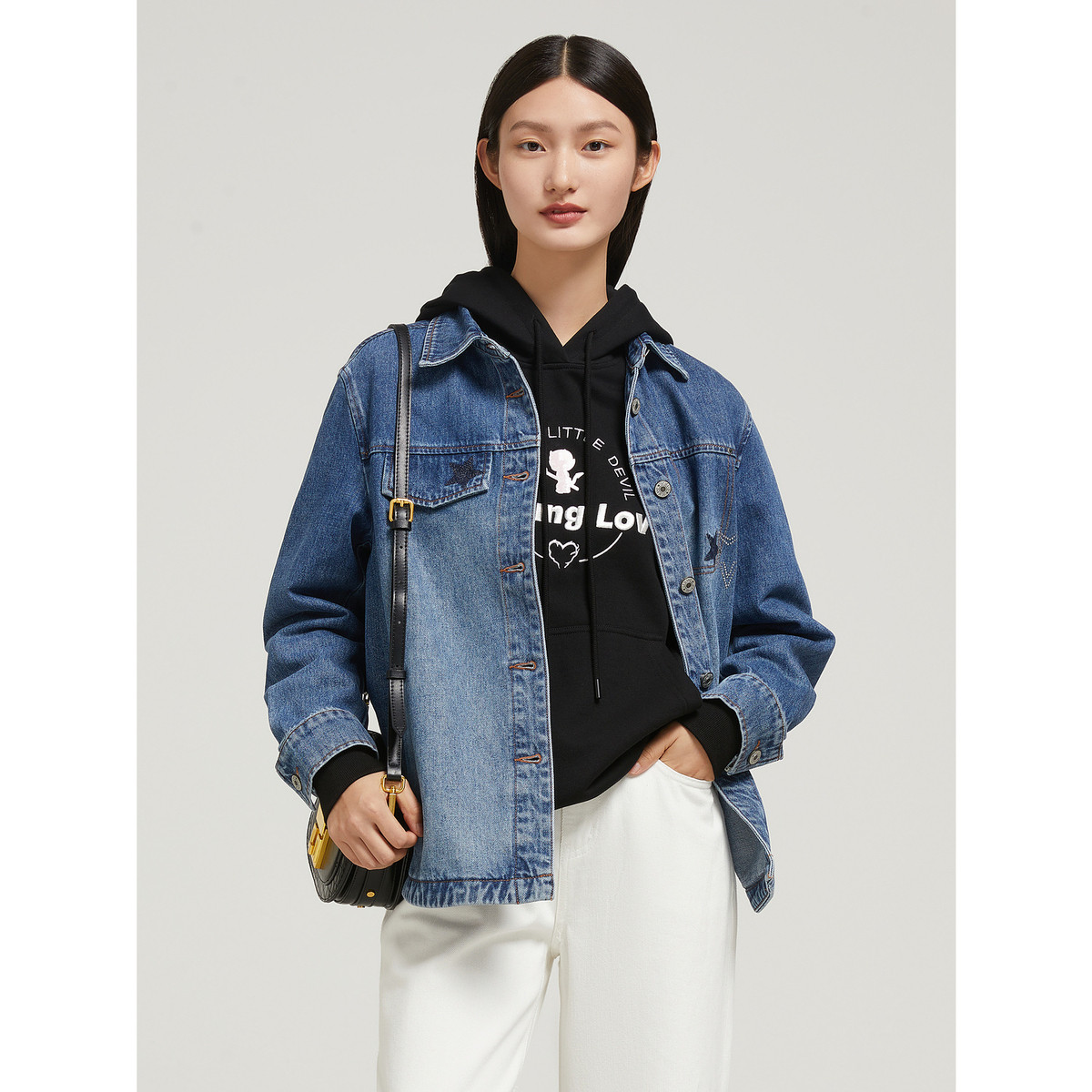 玖姿旗下安娜蔻系列星星烫钻宽松渐变牛仔丹宁休闲外套女 068044
