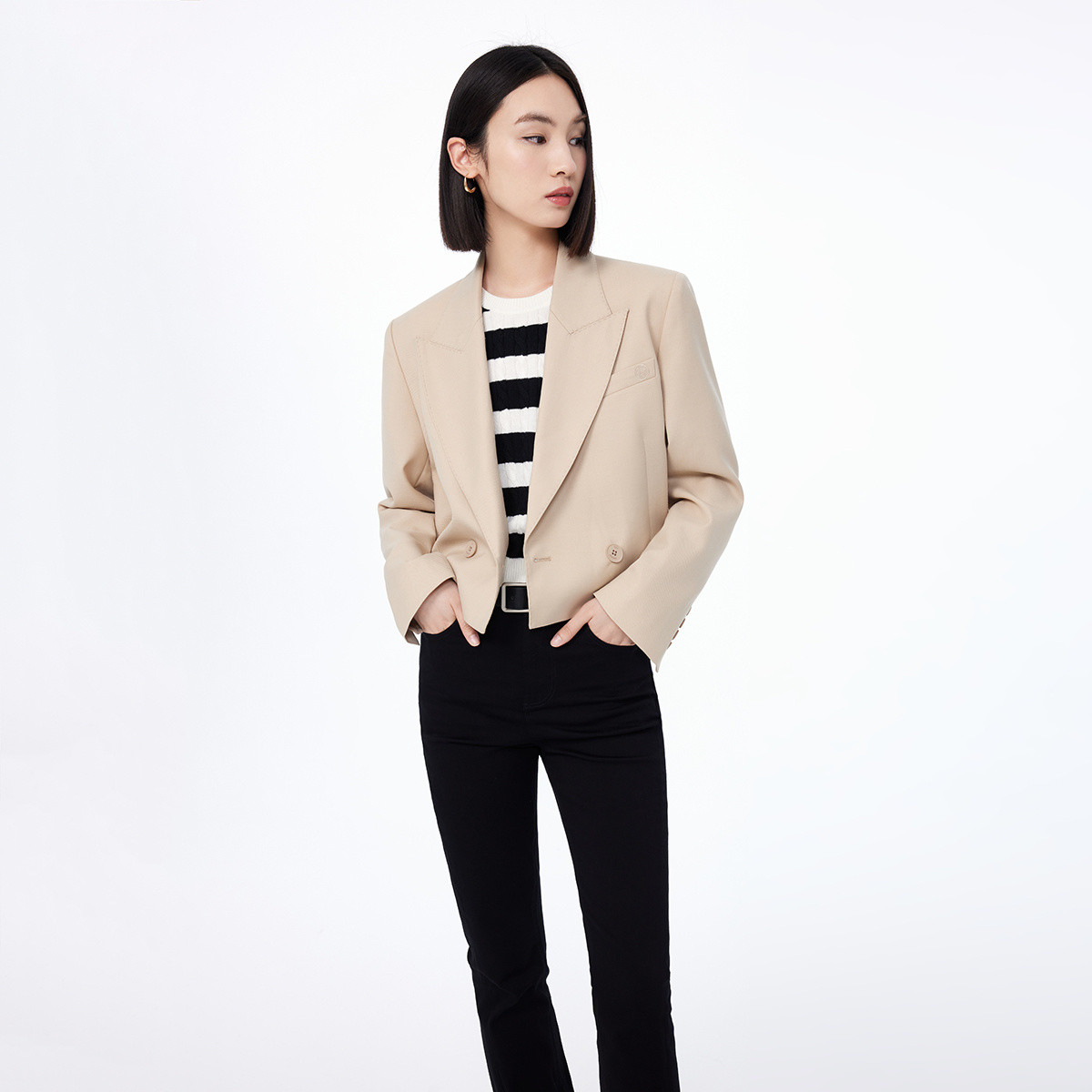 【绵羊毛】西服外套女春季都市通勤时尚双排扣百搭西装外套 816475