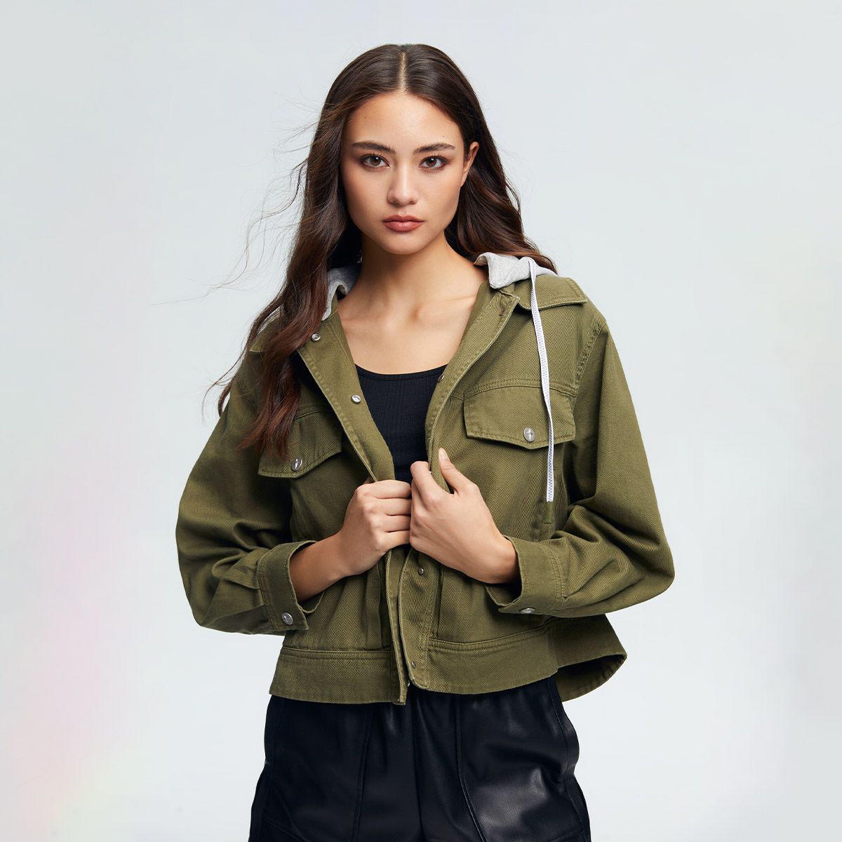 【立体字母装饰】春季夏简约休闲拼接落肩连帽短款外套女 437018