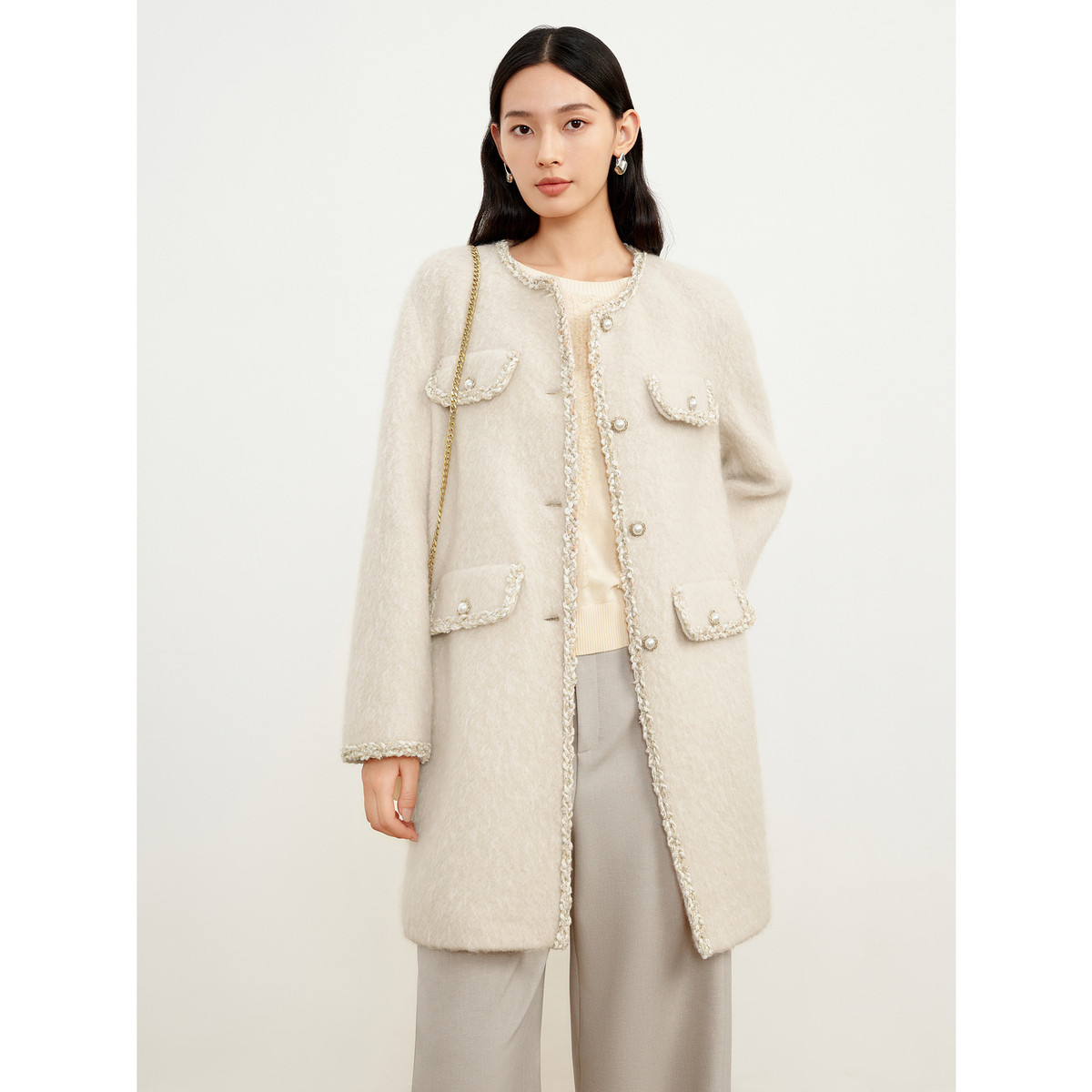 玖姿旗下安娜蔻系列优雅小香风圆领外套中长款厚大衣女冬季 897932