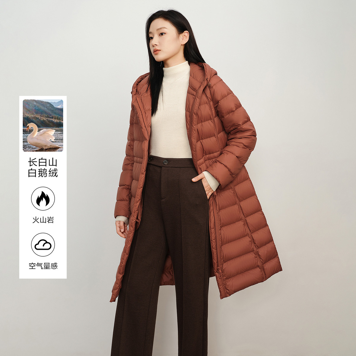 【仙·羽绒】玖姿旗下安娜蔻系列连帽防风白鹅绒中长羽绒服女冬季 639884