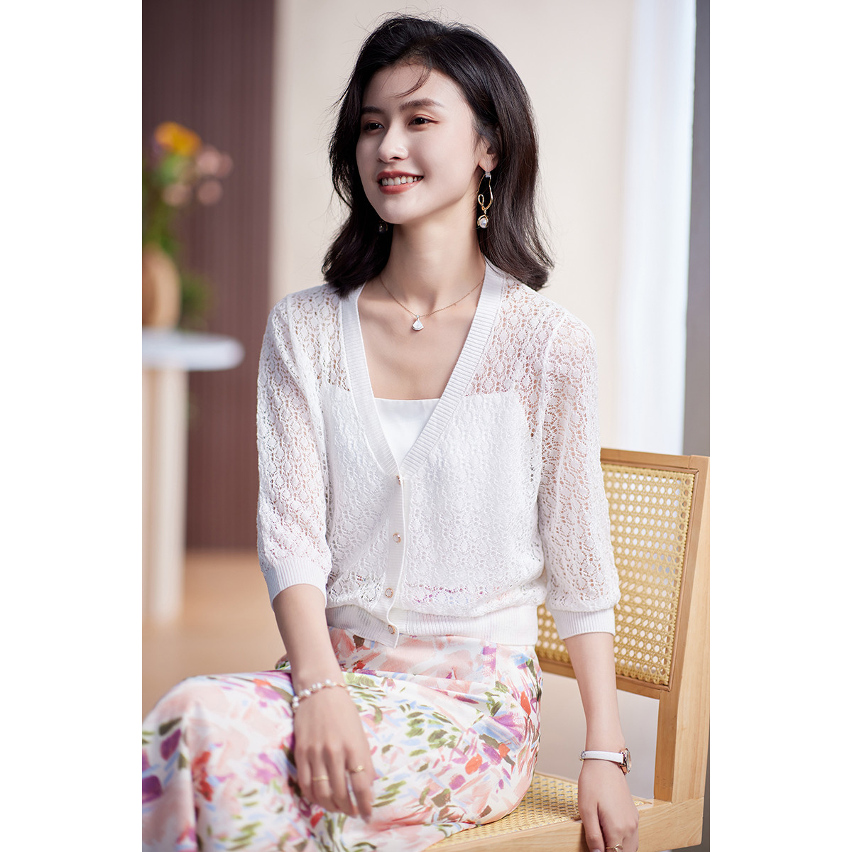 【含桑蚕丝含莱赛尔】夏季薄款披肩外搭提花镂空空调衫外套女夏季 739807