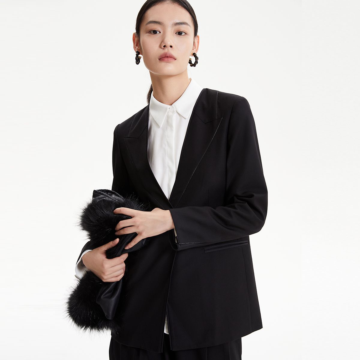 【光泽感面料】春夏直筒翻领肌理感简约韩系西装外套女百搭时尚 367505