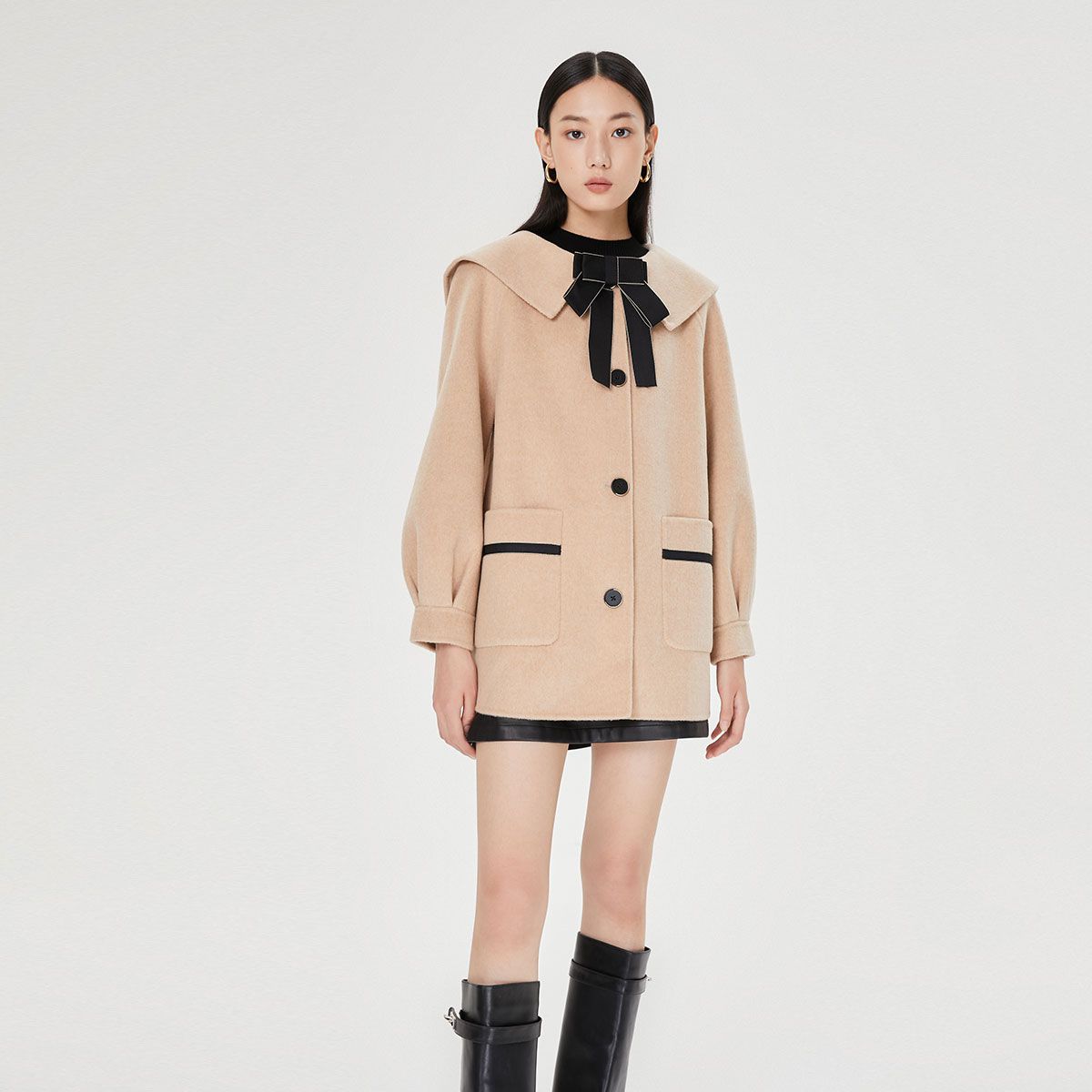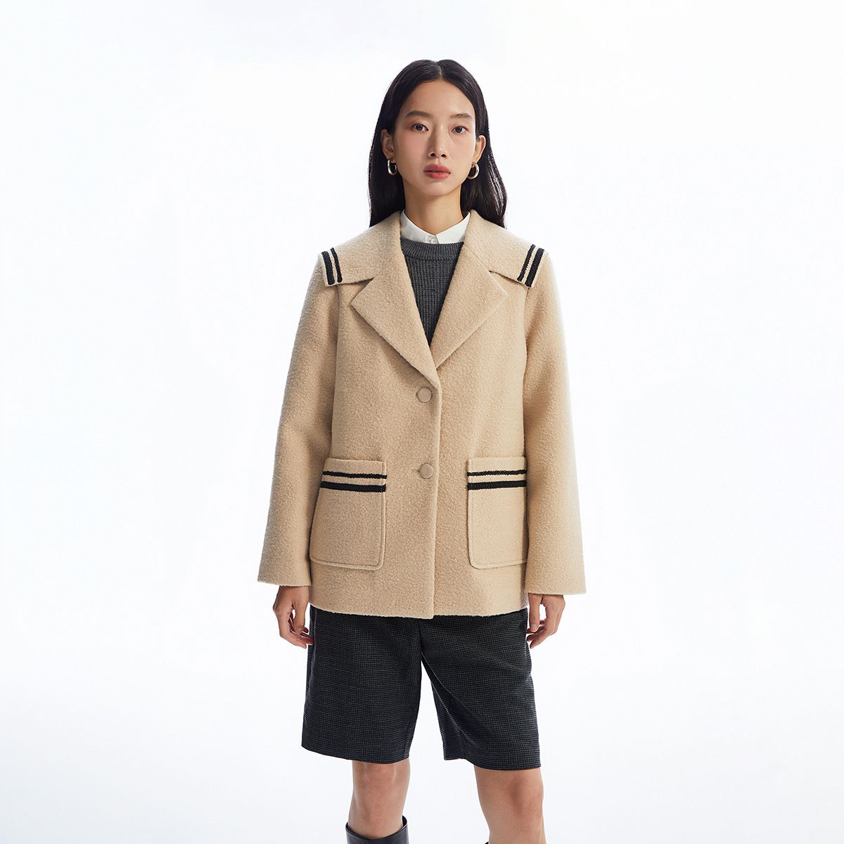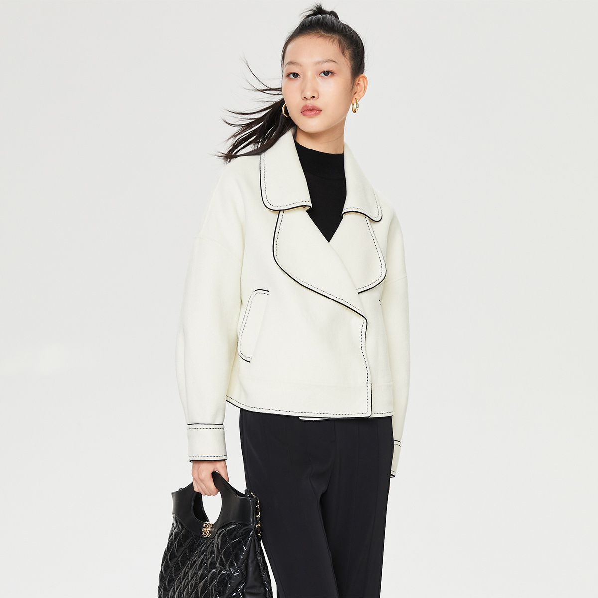 朗姿纯羊毛复古双面呢夹克高级感正肩毛呢冬季上衣 447257